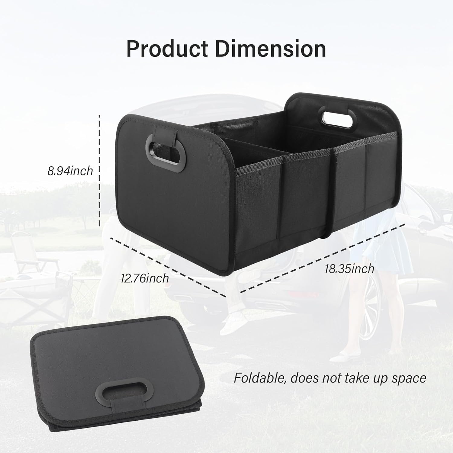 【Convenient and Foldable】 Trunk organizer is designed with space utilization and portability in mind, the bottom is specially equipped with a foldable base plate, which not only enhances the flexibility of the trunk organizer, but also simplifies the storage and carrying process greatly. When the organizer is unused, it is quickly folded up, turning the original three-dimensional organizer into a flat shape, which greatly reduces the occupied space. 【Large Accommodation Space】 Car trunk organizer shows a significant capacity advantage compared to ordinary organizers on the market. Its design not only focuses on providing a larger storage capacity, but also keeps every bit of space fully utilized through scientific and reasonable partition layout, effectively avoiding the chaos and inconvenience that may be caused by the mixed stacking of items. 【High Utility】The trunk organizer for car can also be used for everyday shopping, easily accommodating a large number of items, and its comfortable handheld design makes carrying easy and effortless. You will be able to utilize it for storing and organizing clothes in your daily life, or for outdoor activities, whether it's camping, hiking, fishing, or skiing, you will find a suitable use scenario. 【High Density Oxford Cloth】 Unique double warp and double weft weaving structure gives the fabric good tensile strength and abrasion resistance, even if long time to withstand the pressure of heavy loads, but also can maintain its shape and structural stability, non-slip and not easy to produce deformation or wear and tear, to maintain the durability of the storage box. Non-slip and not easy to produce deformation or abrasion, to keep the durability and load-bearing capacity of the storage box. 【Waterproof and Easy to Clean】 Car organizer's surface waterproof design can effectively stop the penetration of moisture and keep the contents of the box dry. Even if the surface is stained with stains or dust, simply wipe it gently with a damp cloth to restore its original cleanliness and luster, which greatly saves cleaning time and energy.