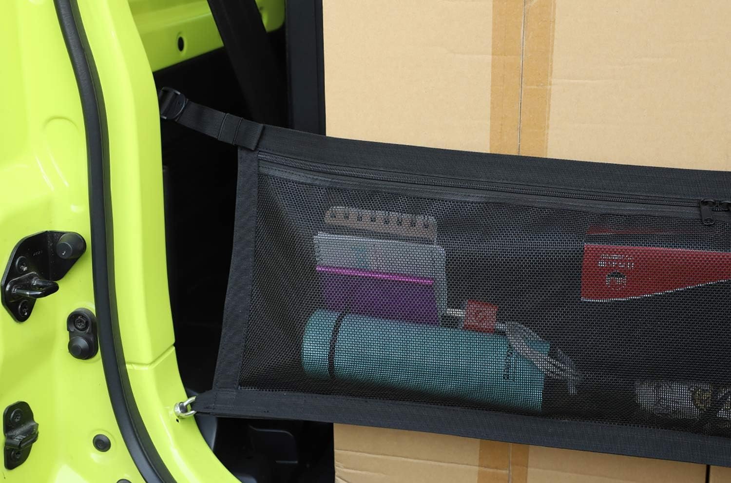 Size-A Vehicle service type-for Suzuki Jimny JB64 JB74 2019-2025 Material-Oxford Cloth Colour-Black Item Description:Condition: 100% Brand new Material: Made of high quality ABS Plastic and Oxford clothColor: Black/RedPackage Include: 1PCSInstallation:1.You need to remove the original car screws2.Install our round hole screws3.the trunk cargo net has snap-on clamps and velcro on the strap so you can attach it to the round hole screwsNote:Due to the different monitor and light effect, the actual color of the item might be slightly different from the color showed on the pictures.Please allow 1-2cm measuring deviation due to manual measurement.Before Purchase Please Double Confirm Fit For Your Car Thanks ã€Perfect Fit】Car Trunk Isolation Net Cargo Net fits for Suzuki Jimny JB64 JB74 2019 2020 2021 2022 2023 2024 2025. ã€Wide Application】Organize a variety of things from Groceries to emergency tools or cleaning supplies and stop things from rolling or rattling all over your trunk or hatch, Keep your storage area organized and clutter free. ã€Excellent Material】Trunk Organizer Cargo Luggage Carrier is made of high quality 600D Oxford cloth with anti-tearing properties, strong, lightweight, washable and durable in use. ã€Easy to Install】Easy install Trunk Isolation Cargo Net Cover Multifunction Storage Organizer Accessories, just install the screws on the screw hole position and tie the hook double fixation for firmness and safety. If there is any problem about our product, please feel free to contact us. Your inquiry related to our products or prices will be replied in 24hours. We believe we could solve the issues in a satisfied way.