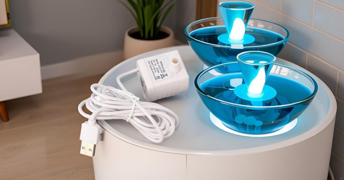 Robust USB-Powered Construction for Safety & Convenience:Engineered for reliability, this pump operates via a stable USB connection, eliminating risks associated with high-voltage appliances. The low-voltage design enhances safety around curious pets, while the waterproof casing prevents short circuits from accidental spills. Its compact build fits discreetly into most fountain setups, and the reinforced cable resists chewing damage. Whether placed in busy households or multi-pet environments,