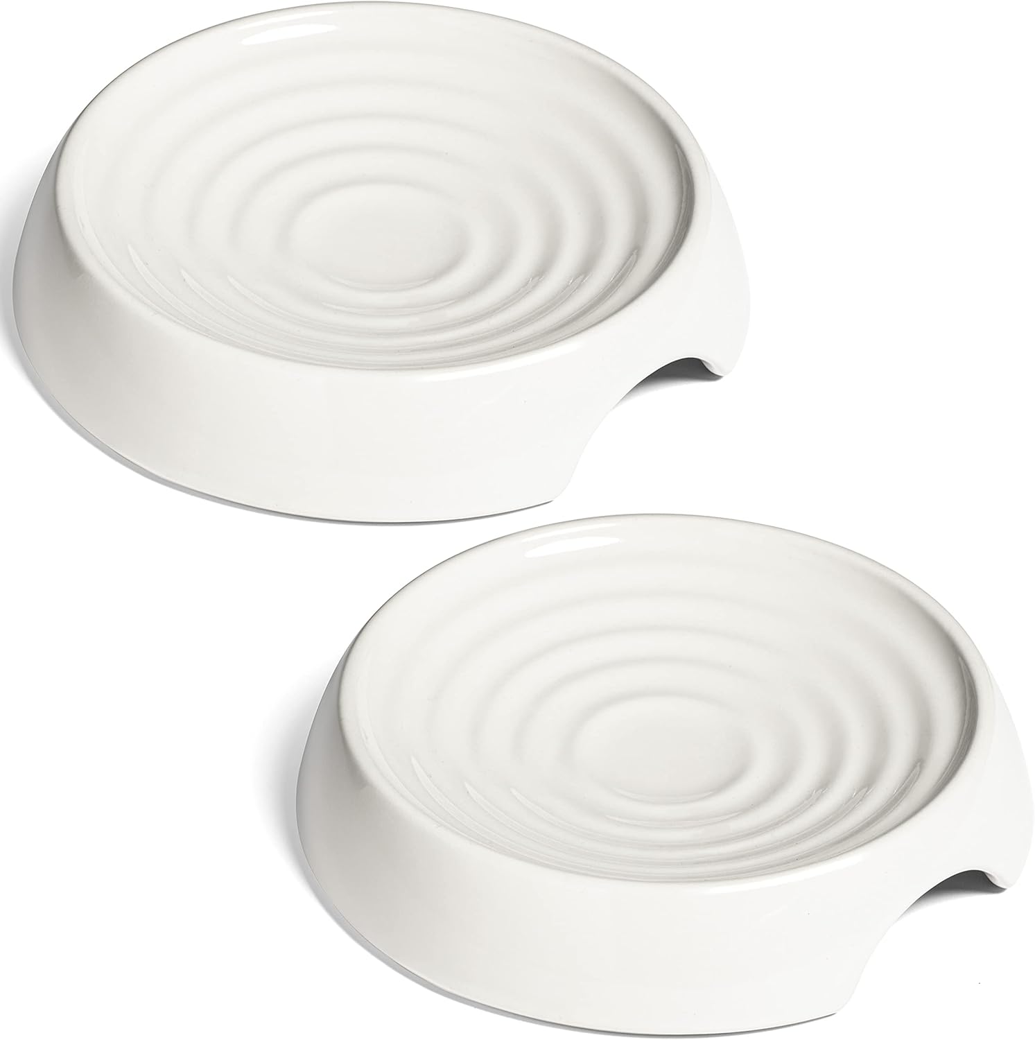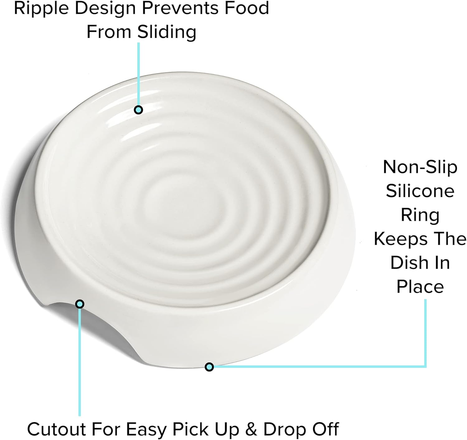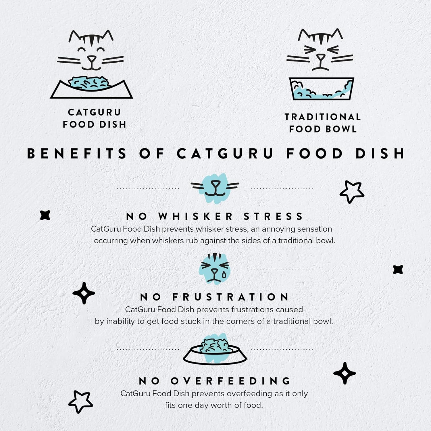 CatGuru Whisker Stress Free Food Bowl, Wide Non-Slip Shallow Dish for Feeding & Watering, Relieves Fatigue (Set of 2, Ceramic, White)