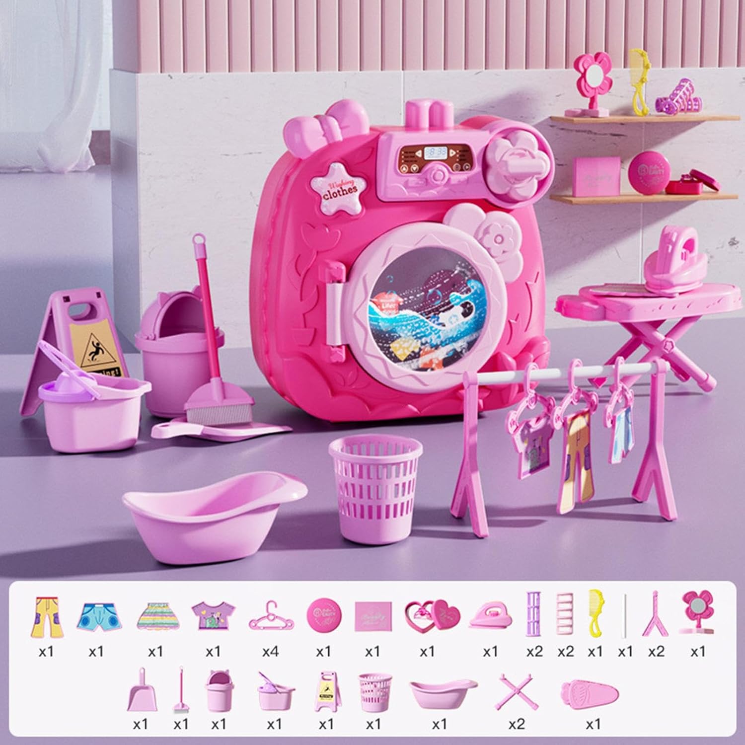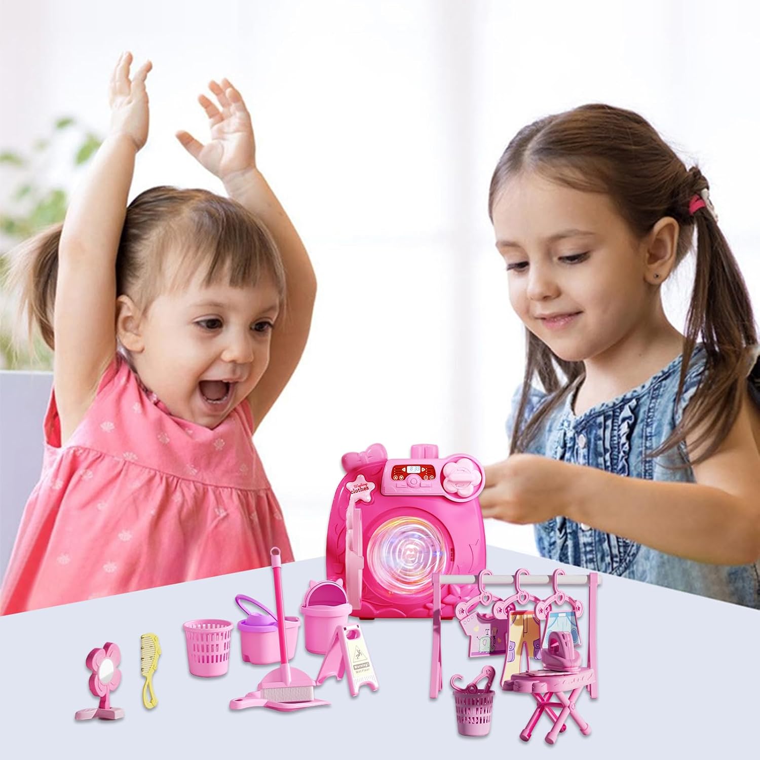 ccuzs Kids Washing Machine, Interactive Pretend Play Washer and Dryer, Miniature Educational Toy with Accessories for Girls and Boys, Material: ABS, 8.58x4.33x8.94in