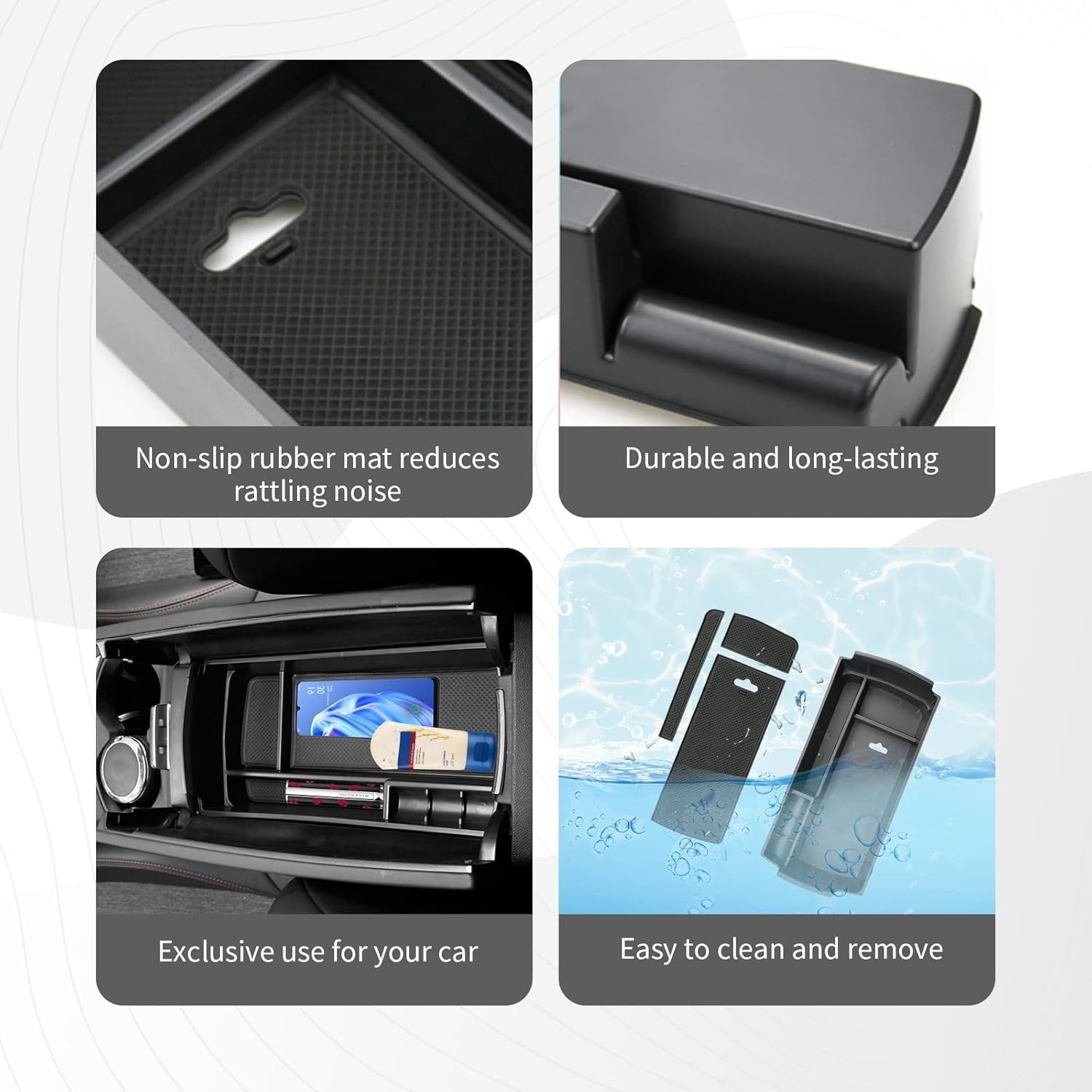 Easy to install: It is the same size as the original vehicle and can be installed directly without any modification. The built-in non-slip mat prevents the item from slipping into the box and prevents abnormal noise.