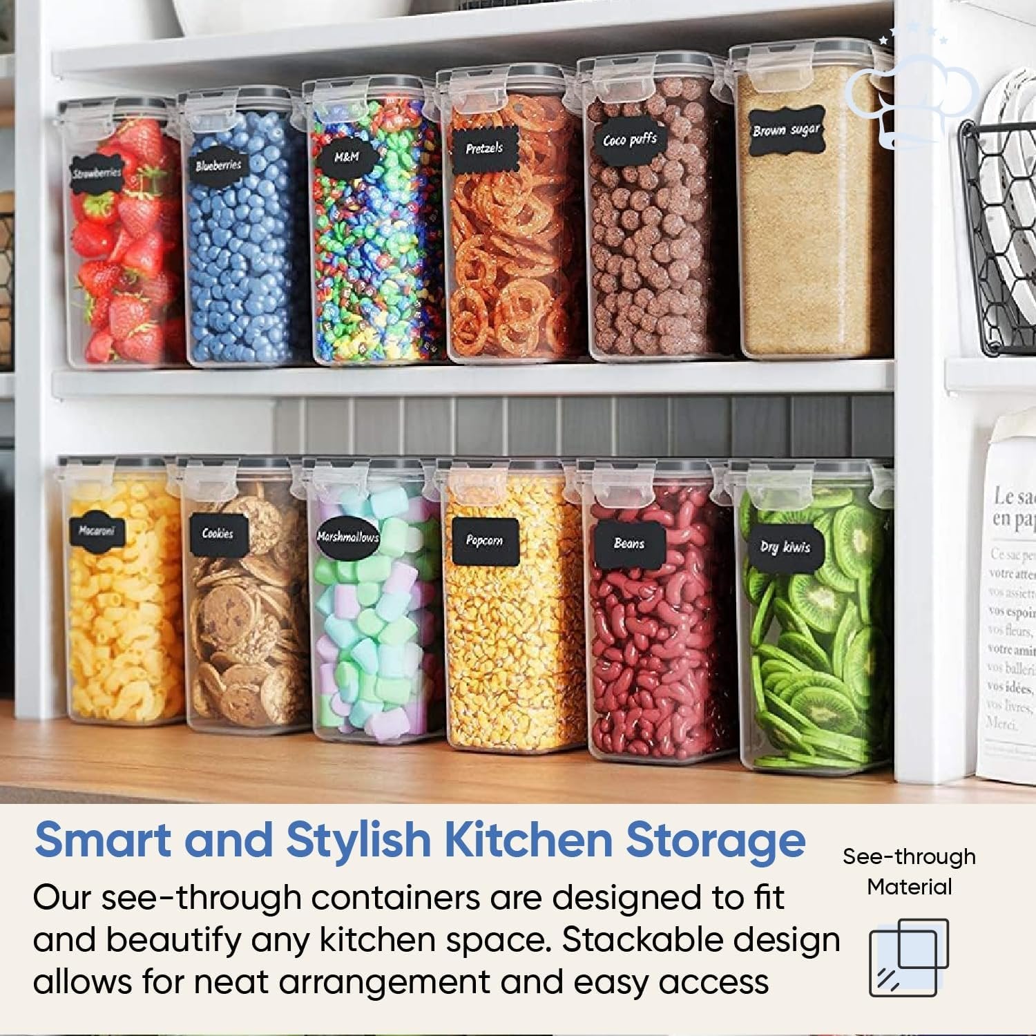 Elegant small same size containers - Give your kitchen or pantry an upgrade with our 12 elegant small same size air-tight containers. Each one has a 2.0-liter capacity (67.7 oz/ 8.45 cups/ 0.53 gallons) and the dimensions are 5.15 x 3.25 x 8 inches. Your kitchen will never look the same again Superior bundle - Your complete bundle comes with 12 BPA-free premium food-storage canisters, measuring spoon set, a chalkboard marker & bonus reusable chalkboard labels allowing you to organize your pantry like never before. This set comes in a beautiful box which makes it an ideal gift for any family. Nobody else in the market provides more value to you than us Space saving design - These durable bins have been especially designed to minimize space, they are stackable and will easily fit into your refrigerator, freezer or cupboard which enables you to get the kitchen organized and frees up space in the pantry. These clear containers are also easy to clean, extremely user friendly and ready to use. Our promise - We are completely confident that you will Love our containers, if you don't love it or don't feel it was worth every penny of your investment today, we'll give your full payment back no questions asked and you can keep the containers as well.
