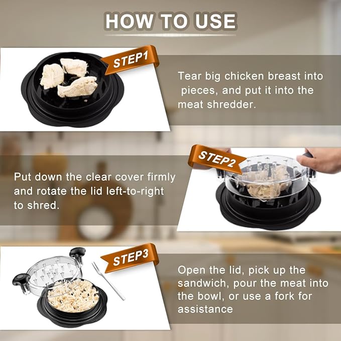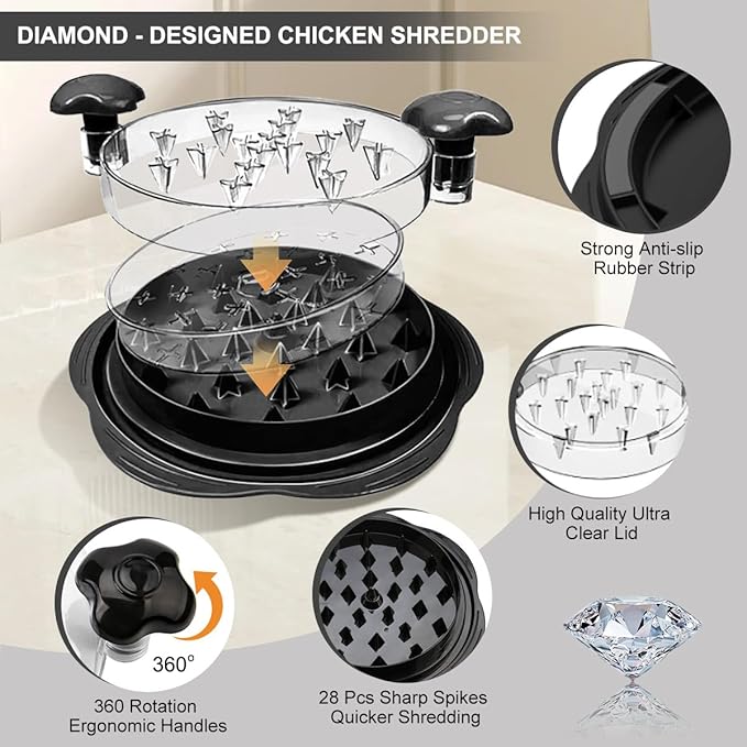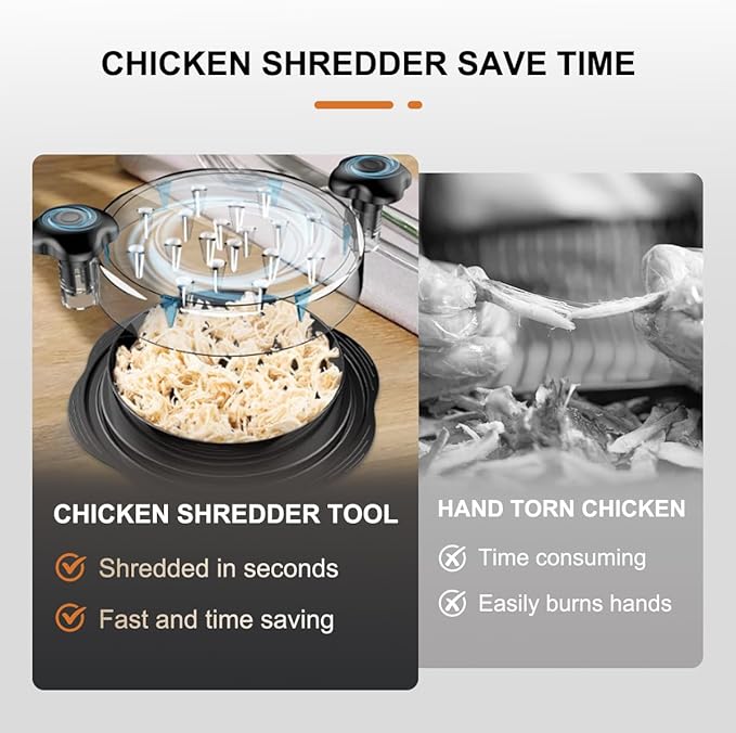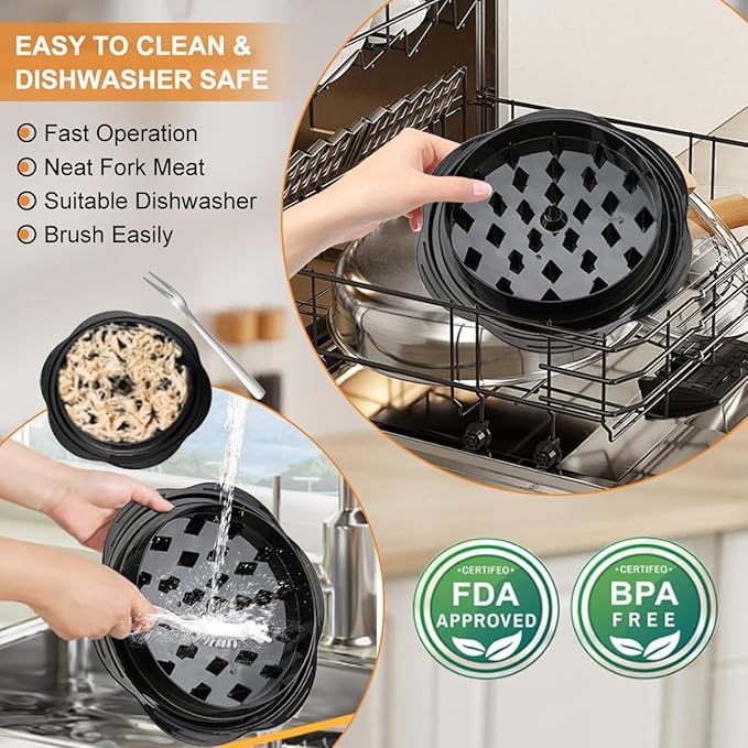 Chicken Shredder, Chicken Breast Shredder Tool Twis with Brush&Fork, Visible Meat Shredder Machine Strong Anti-Slip Base, Safe Transparent Lid, Bpa Free, Dishwasher Safe (9.84"-Black)