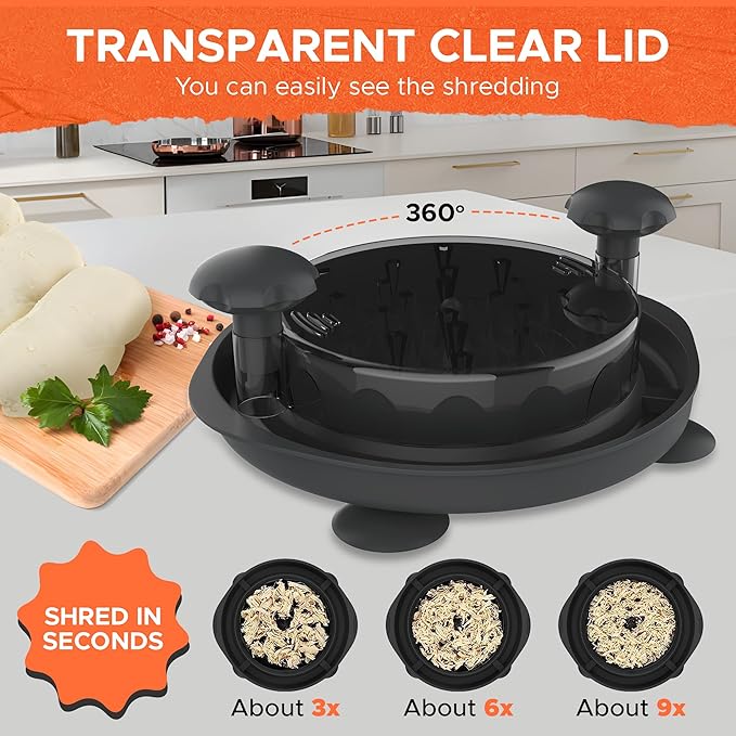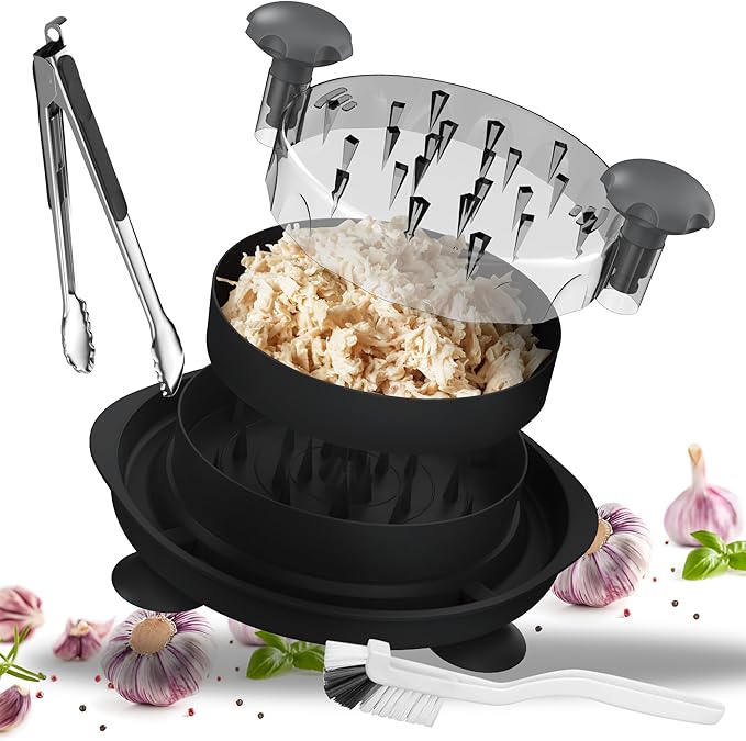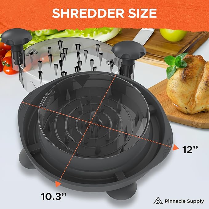 Chicken Shredder Tool with Suction Cups, Tongs & Cleaning Brush - Large 12" Meat Shredder Tool with Anti-Slip Base - Efficient Chicken Breast Shredder - BPA Free Food Shredder - Pulled Pork Shredder
