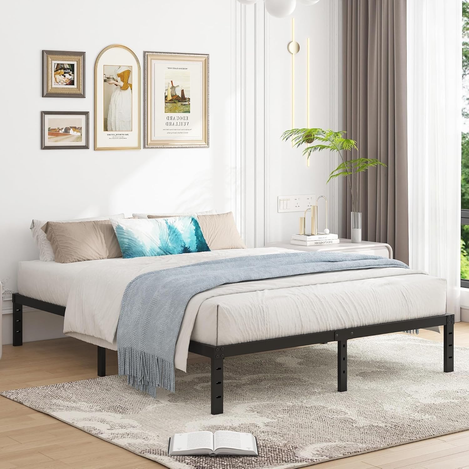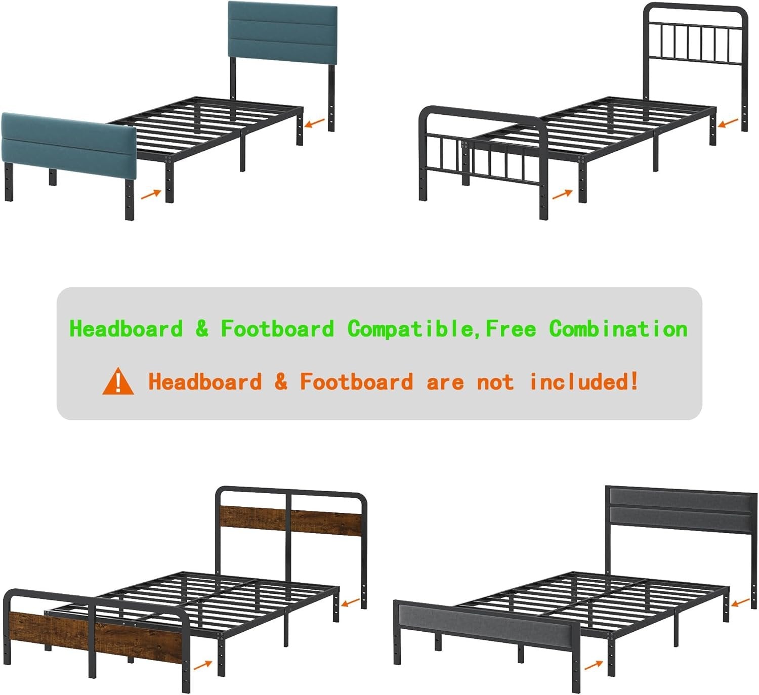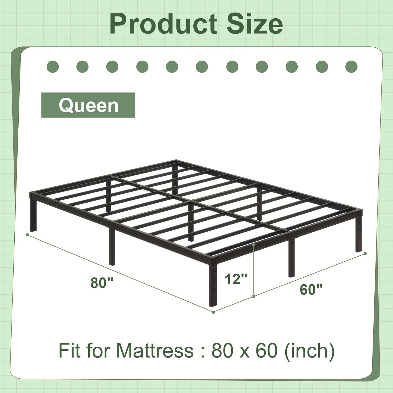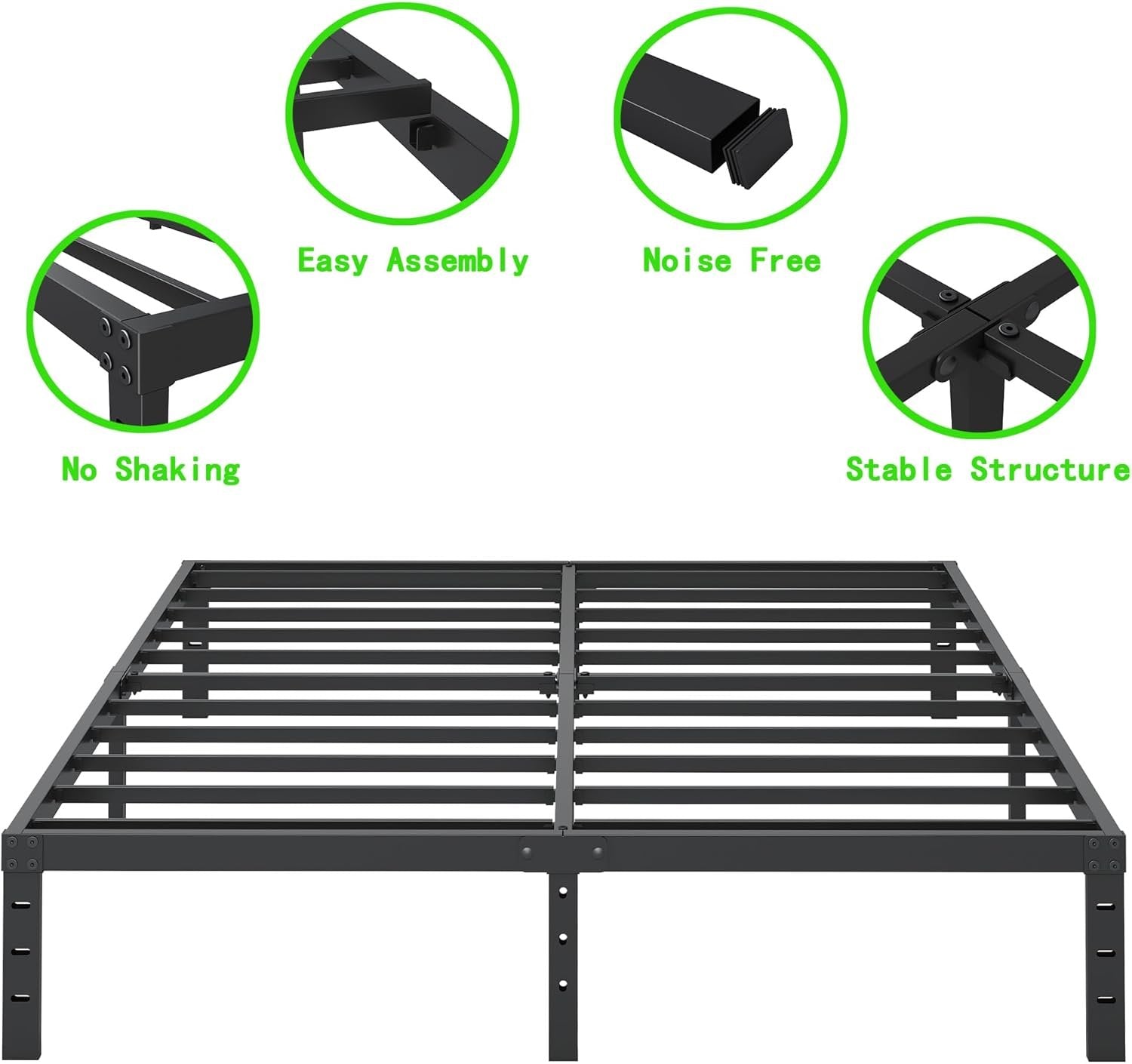 Heavy Duty: Reinforced steel support slats,noise free, nice sleep, 2500lbs of weight capacity,Durability and Stability. Storage Capacity: This 12 inch high metal platform bed frame with 10 inch of ample underbed storage space,bringing more storage space, keeping the room neat & organized. Free Combination: Offers the convenience to create your own headboard and footboard with 3 holes included in the design on the other side Legs. No Box Spring Needed: Your mattress can be placed into this 12 inch high metal bed frame directly, no box spring required anymore, will save your cost greatly. Easy Assembly: All the parts and tools are included in the box, No extra tools required, quick and easy assemble in 30 minutes.