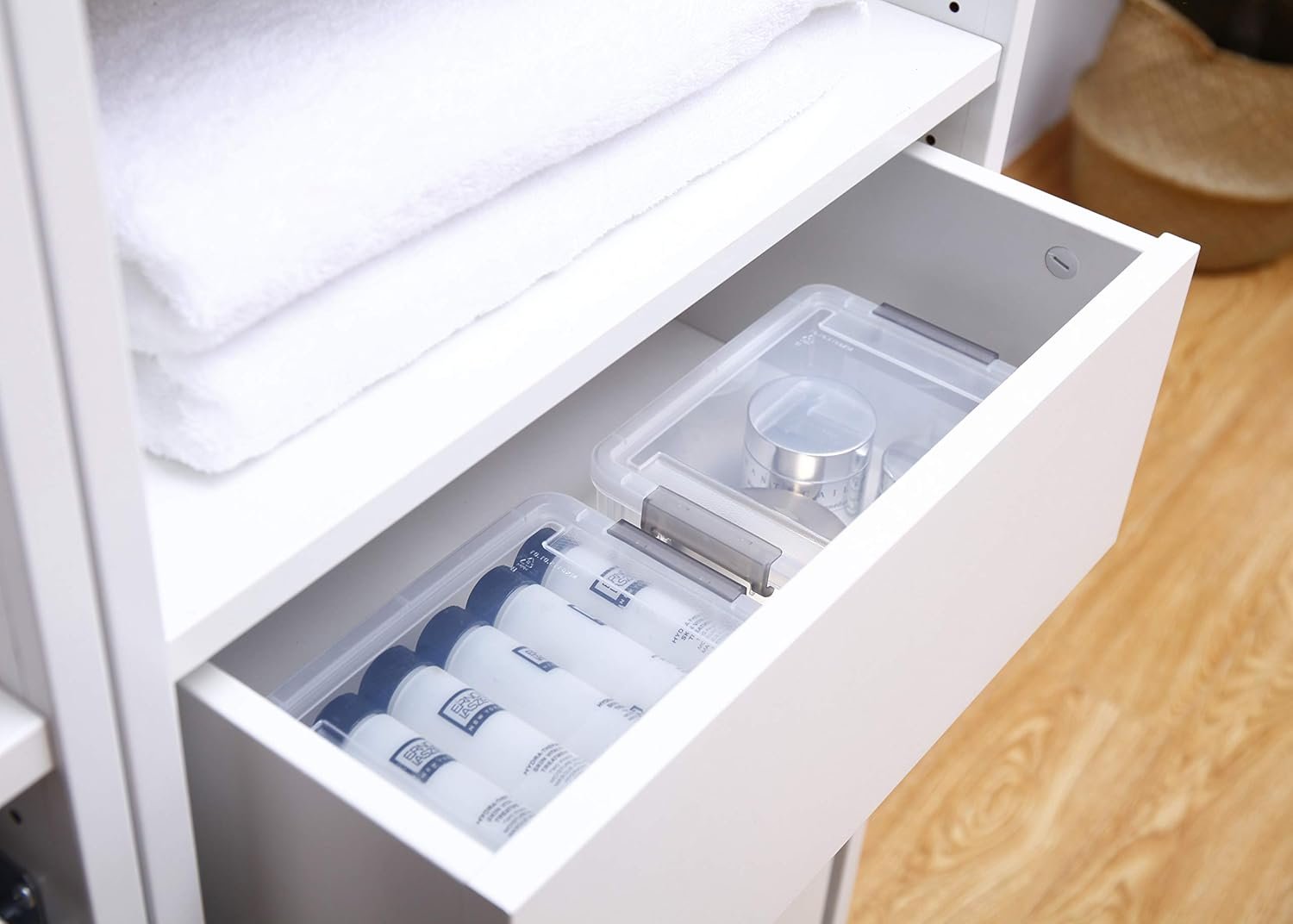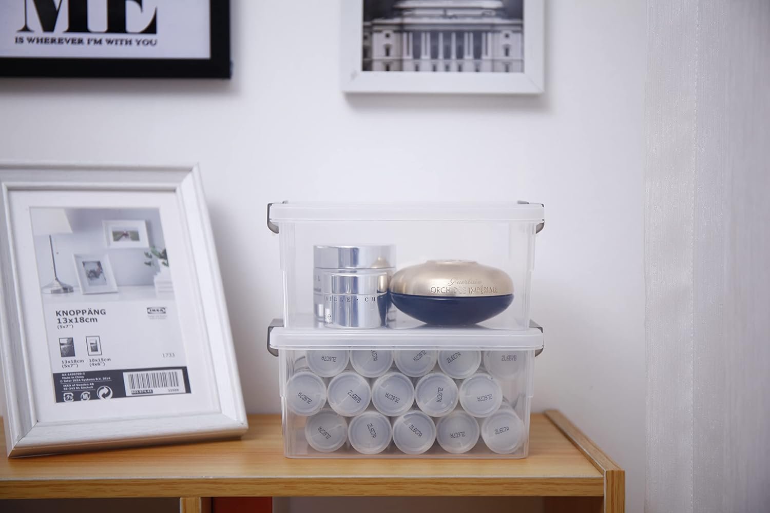 🌈【Capacity & Dimension】 Includes 10 small storage bins with lids, a single capacity of 1.32 quart/ 1.23 L. Outside widest dimension 6.9"L*5.12"W*3.15"H, inner narrowest dimension 5.83"L*3.94"W*2.83"H; 🌈【Neat & Clean】Keeping some items in the room neatly and cleanly through the storage bins. And you can quickly get what you want without pouring out all the items in the storage box; 🌈【Stackable & Easy to Lift】 These small storage bins with lids are stackable to allow for maximum storage items in less space. And its non-slip handles are easy to lift; 🌈【Multi-Purpose】Excellent performance in storage by a versatile way. It is ideal for screws, pushpins, hair clips, rubber bands, cotton swabs, crafts , and other small personal items. It is the best gift for family and friends.