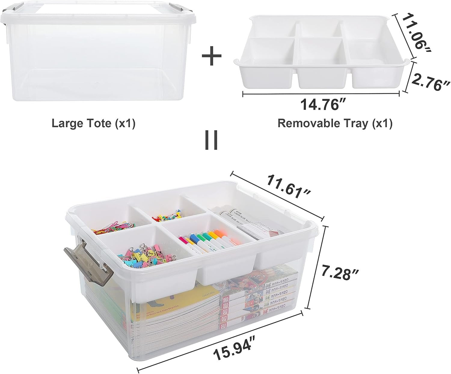 👍【Multi-layer separation design】The storage box has 6 partition trays that can be placed or taken out according to your purpose and type. The removable tray keeps some of your smaller items neat and organized, and the extra depth allows for larger, bulkier supplies; 👍【17-Quart Capacity】Capacity: 17-quart. Overall Dimensions: 15.94"L * 11.61"W * 7.28"H. Perfect for arts and crafts supplies, stationery, kids building blocks, sewing kit, and other small tools; 👍【Perfect Solution for Craft Storage】If you need to organize art or craft supplies, this plastic storage bin is an ideal solution. Colorful beads, sewing art, fishing equipment, figurines, sewing kits, cardstock, and other items are also great for this storage box; 👍【Stylish Superior Quality】Made of high-quality and durable PP5 plastic, it has a long service life and resists wear and tear. Odorless and BPA free;