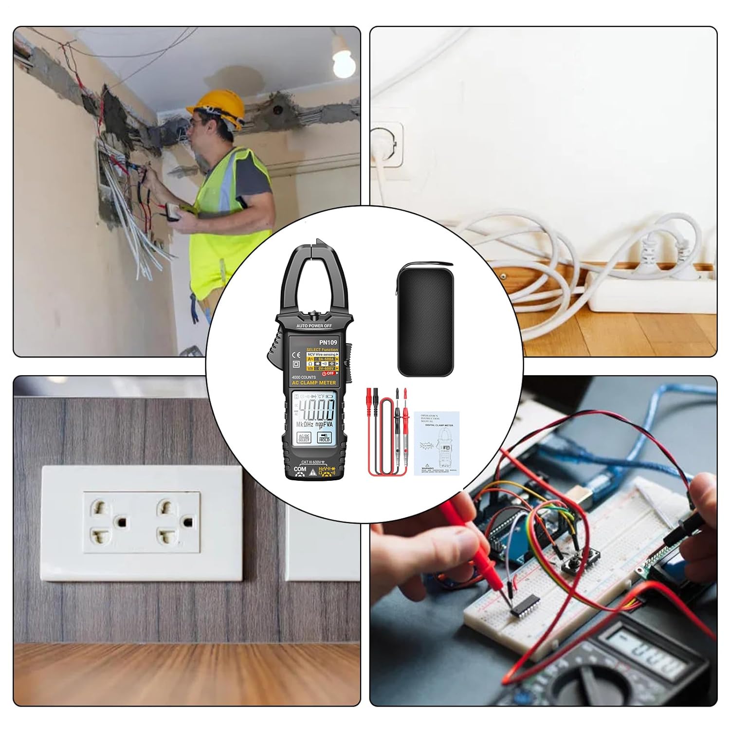 Clamp Multimeter 4000 Count Digital Multimeter with Case, LCD Backlight Display, Safety Protection, Automatic Range Detection, Professional Automotive Tool for Accurate Measurements and Diagnostics
