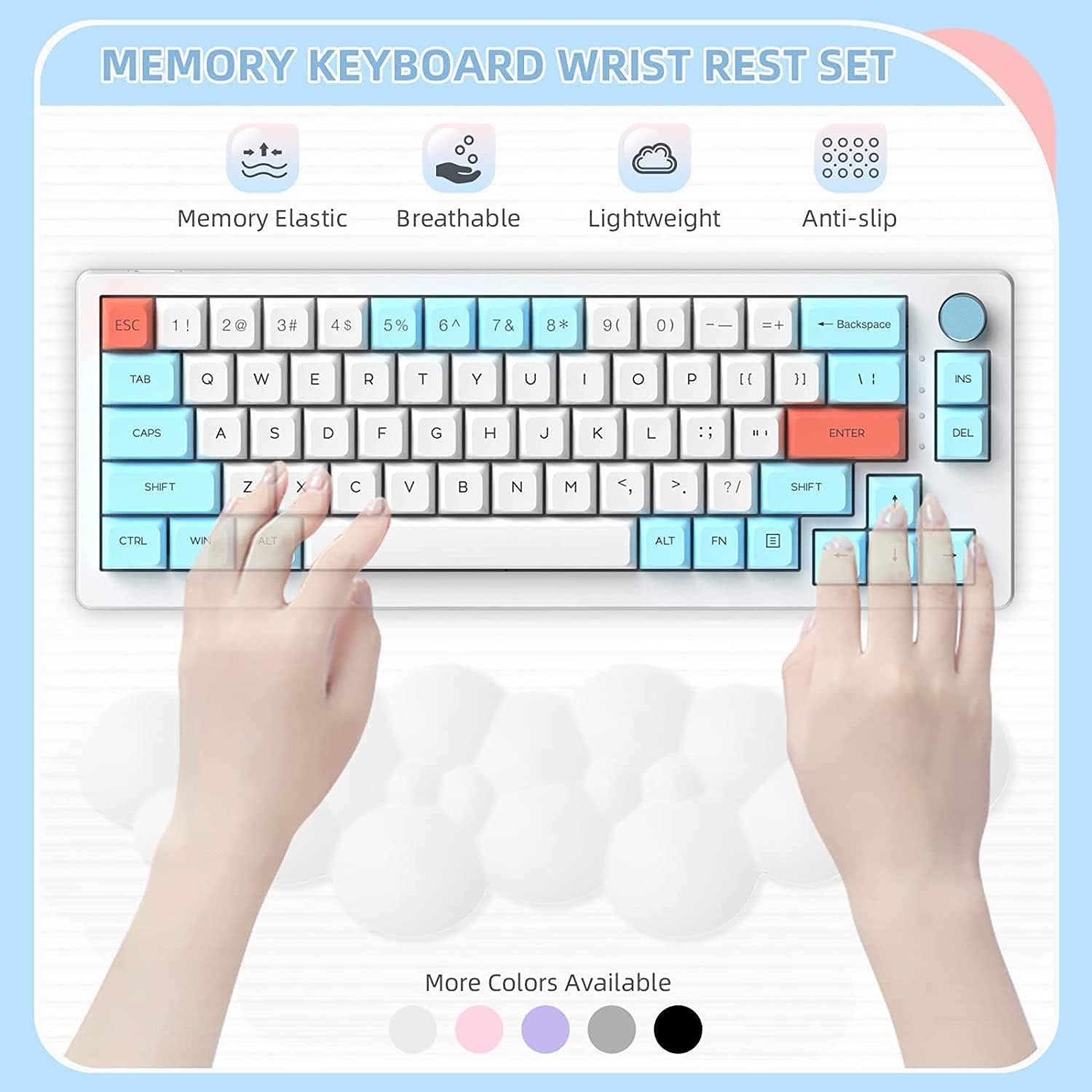 Cloud-Soft Ergonomic Wrist Rest for 100 Keys 87 Keys 68keys Keyboard PU Material Anti-Slip Rubber Base Memory Foam Cloud-Shaped Palm Rest for Computer Laptop,Pain Relief (White)