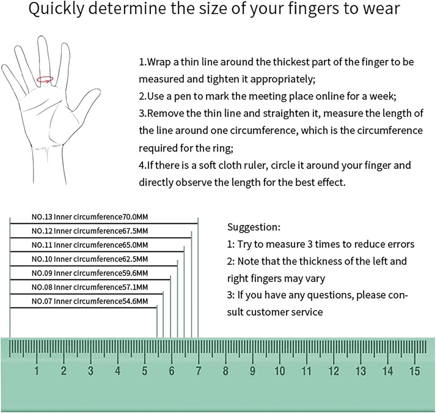 MULTIFUNCTIONS: - Family Care - NFC Control - Pedometer:Steps,Calories,Distance - Heart Rate Monitor - Exercise Monitor - Remote Camera - Sleep Tracker HARDWARE: Bluetooth:5.0 Full Charge Time:About 1 Hour Charging Requirement:Charging 1A or less Ring Battery:15-20mAh APP:SmartHealth Standby Time:One full charge gives you(3 days of working time) iOS 11.0 or above,Android 6.0 or above Ring Material:Stainless Steel Packaging Accessories: Smart Ring*1 Manual Charing Case*1 RING SIZE: BLACK&WHITE COLOR: #7 (Ring inner diameter:17.3m/0.67",Ring circumference:54.6mm/2.13") #8 (Ring inner diameter:18.1mm/0.71",Ring circumference:57.1mm/2.23") #9 (Ring inner diameter:18.9m/0.74",Ring circumference:59.6mm/2.32") #10 (Ring inner diameter:19.8m/0.76",Ring circumference:62.5mm/2.47") #11 (Ring inner diameter:20.6m/0.81",Ring circumference:65mm/2.53") #12 (Ring inner diameter:21.4m/0.84",Ring circumference:67.5mm/2.64") #13 (Ring inner diameter:22.2m/0.87",Ring circumference:70mm/2.73") PINK COLOR: #7 (Ring inner diameter:17.3m/0.67",Ring circumference:54.6mm/2.13") #8 (Ring inner diameter:18.1mm/0.71",Ring circumference:57.1mm/2.23") #9 (Ring inner diameter:18.9m/0.74",Ring circumference:59.6mm/2.32") #10 (Ring inner diameter:19.8m/0.76",Ring circumference:62.5mm/2.47") - IP68 Waterproof - DO NOT suitable for hot water bathing,diving,swimming,water-related work. Any questions,please kindly contact us,we would always offer best solution to you.