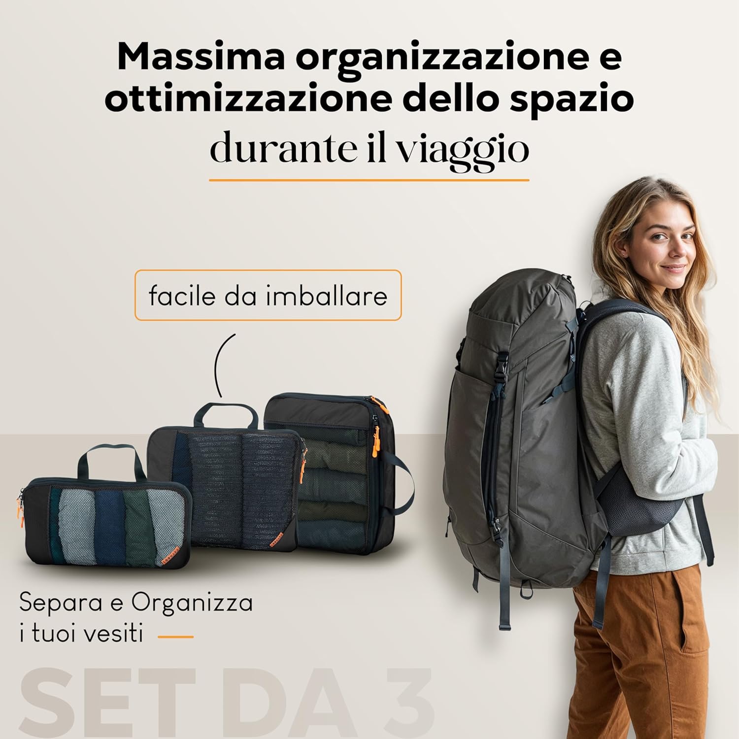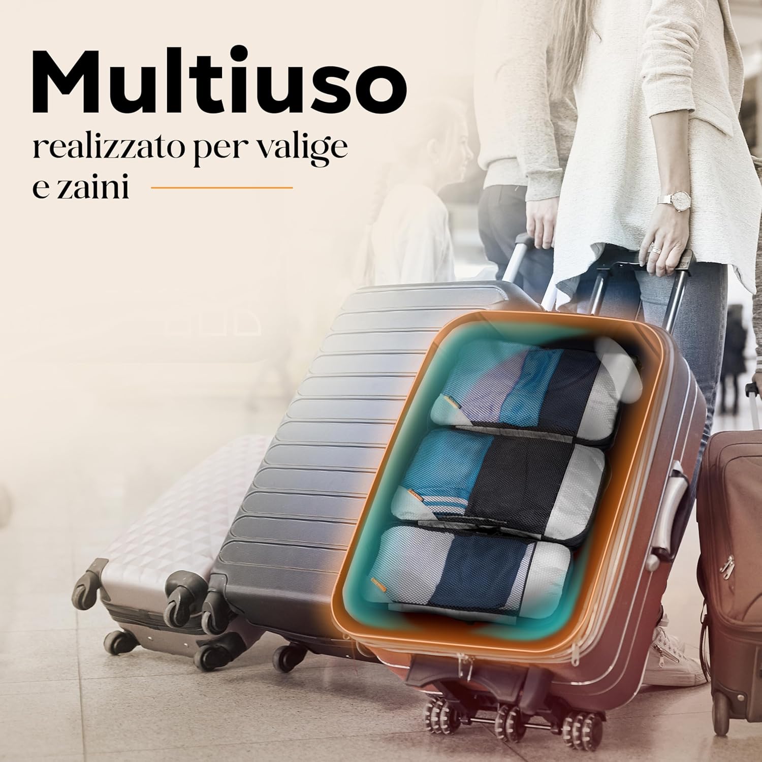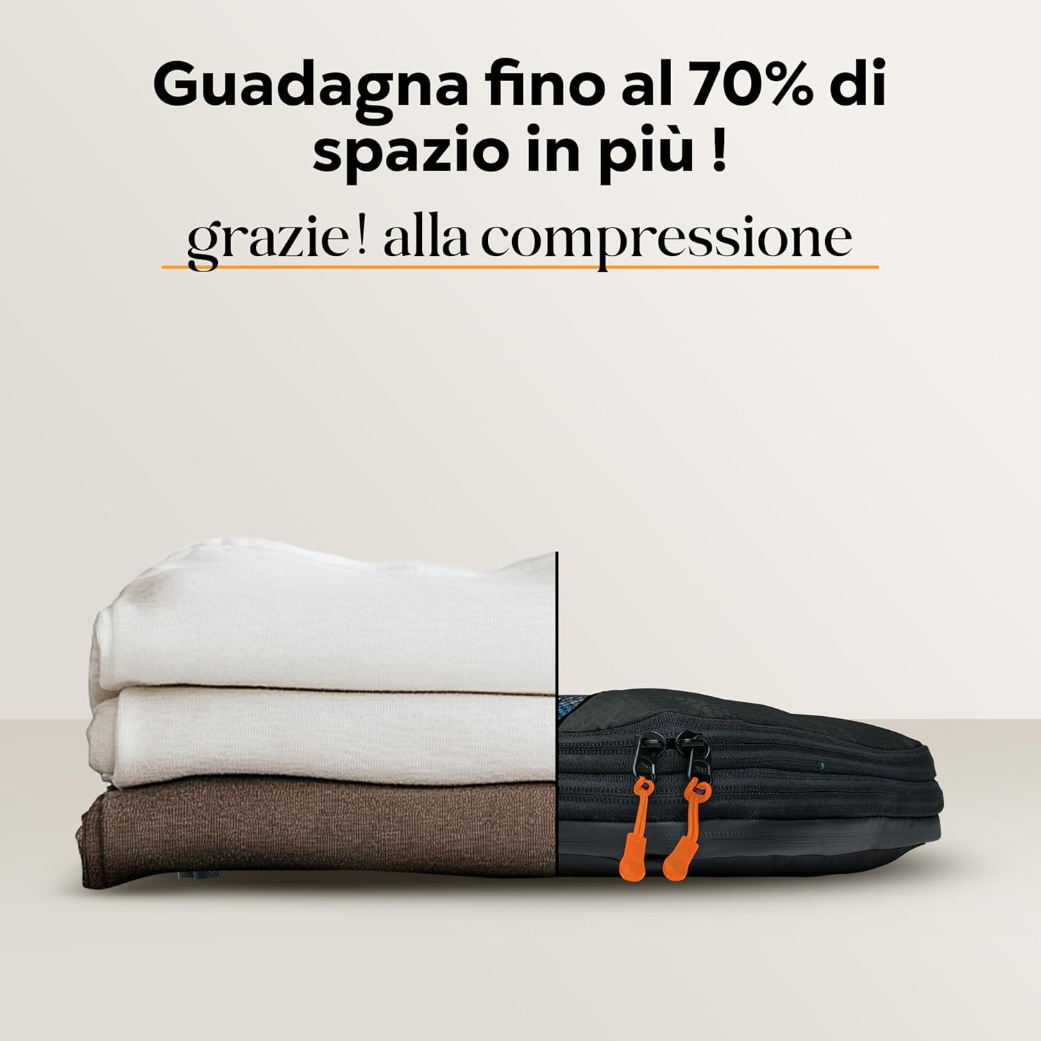 Compression Suitcase Organizer Set - Packing Cubes Compression for Travel, Space-Saving Suitcase Organizer 70% Plus, Travel Backpack in Durable Recycled Polyester, Breathable, 7 Sizes
