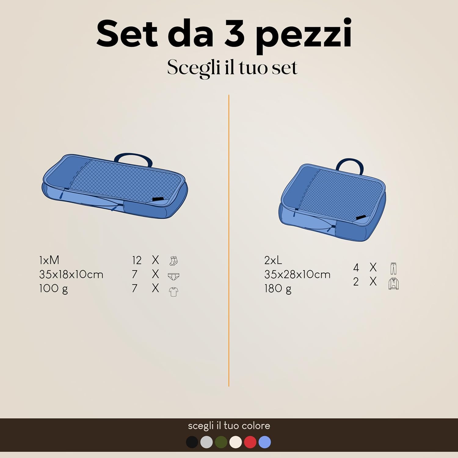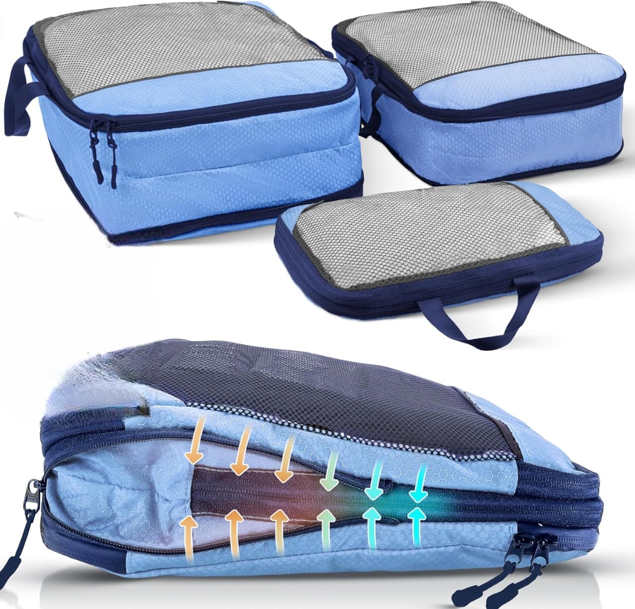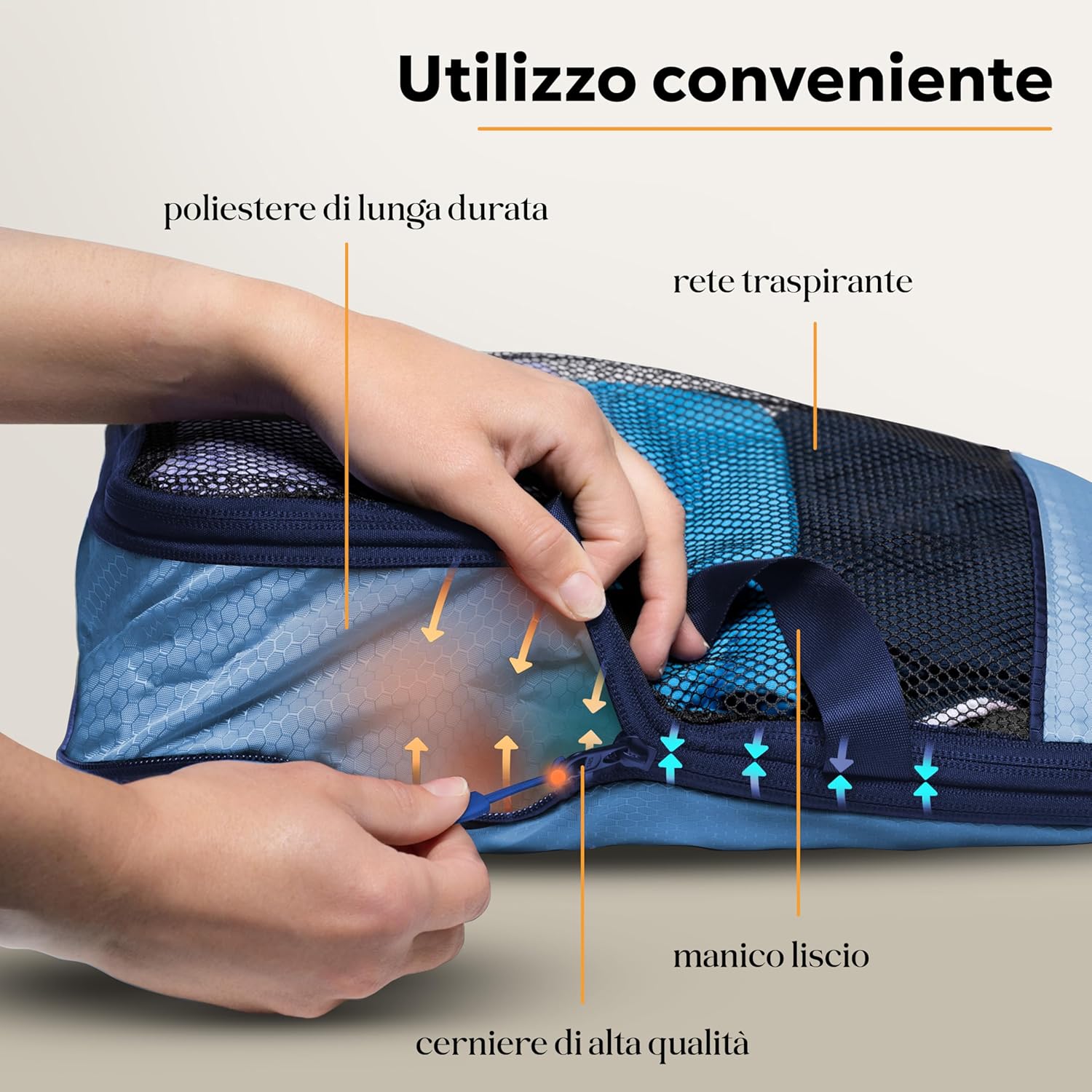 Compression Suitcase Organizer Set - Packing Cubes Compression for Travel, Space-Saving Suitcase Organizer 70% Plus, Travel Backpack in Durable Recycled Polyester, Breathable, 7 Sizes