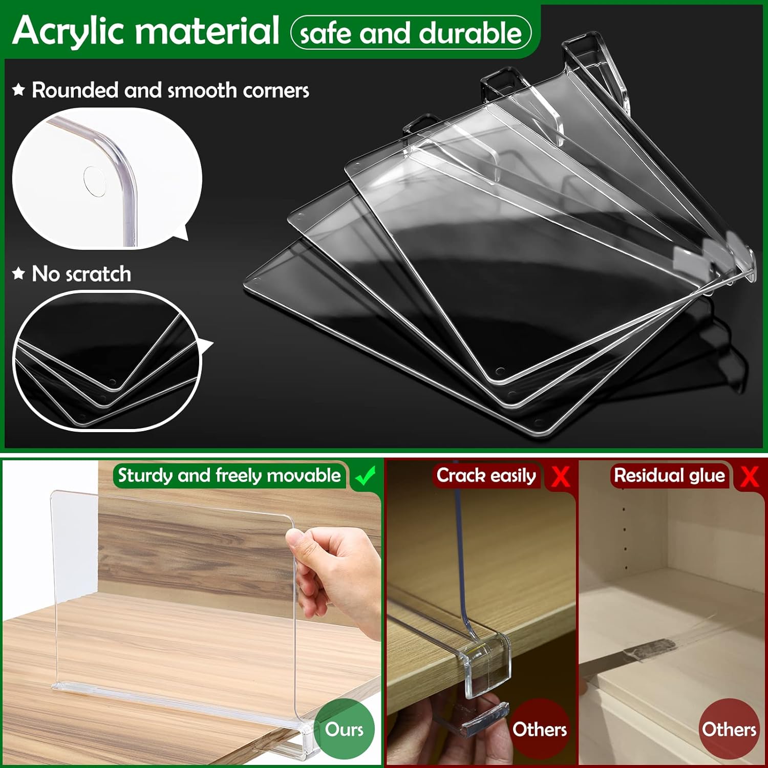 Consevisen Shelf Dividers for Closet Organization and Storage, 8 Pack Acrylic Clear Closet Shelf Dividers for Wood Shelves, Vertical Sweater Handbag Purse Organizer for Bedroom Kitchen Office