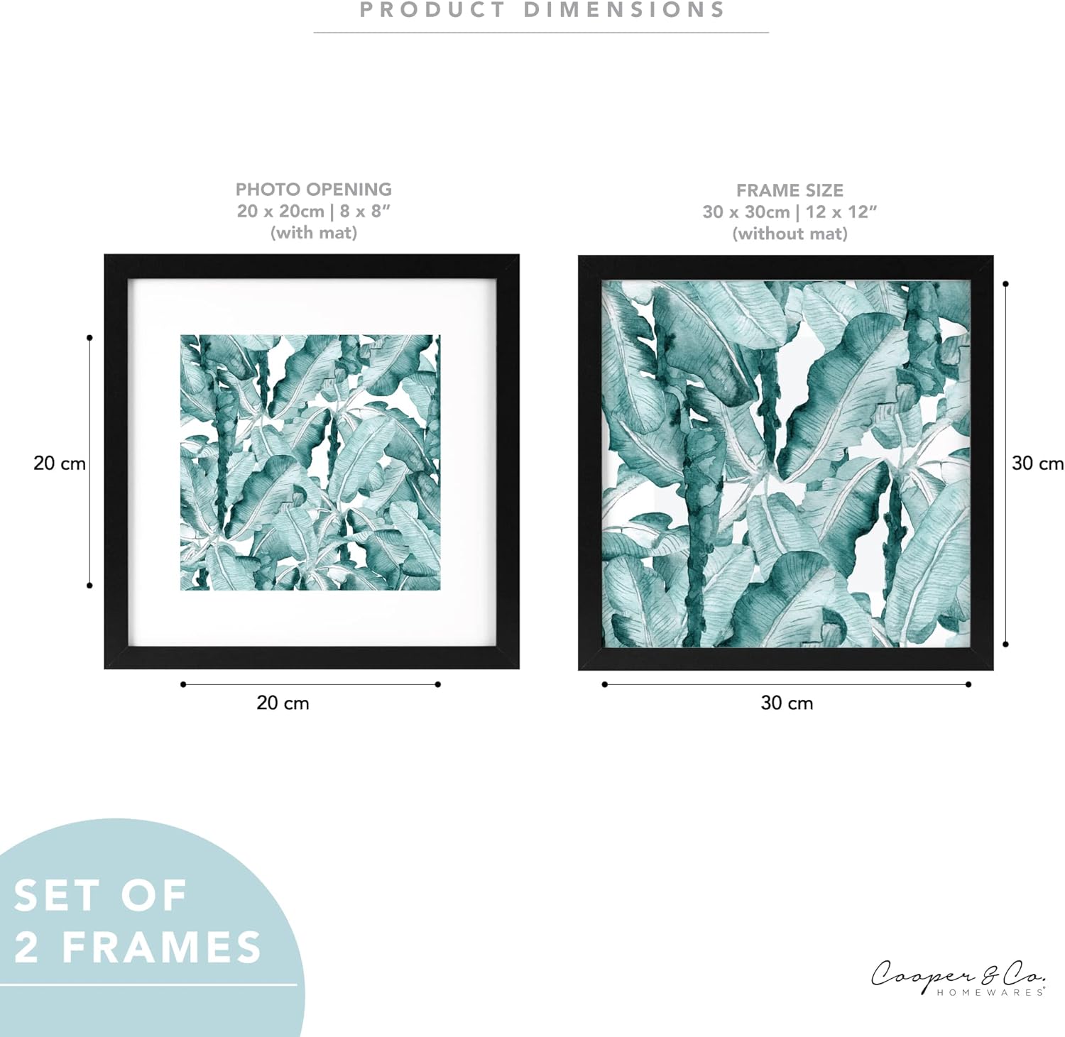 Cooper & Co. Homewares 30 x 30 cm Matt to 20 x 20 cm Premium Paradise Wooden Photo Frame Set of 2 Pieces, Black