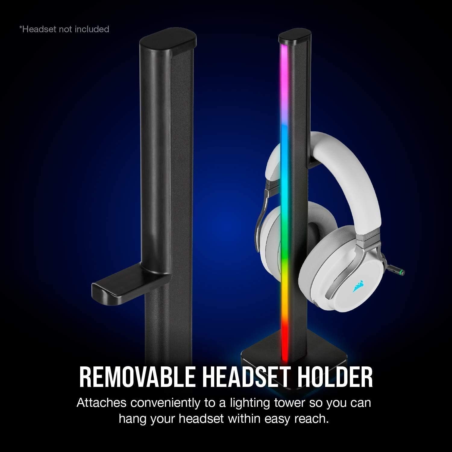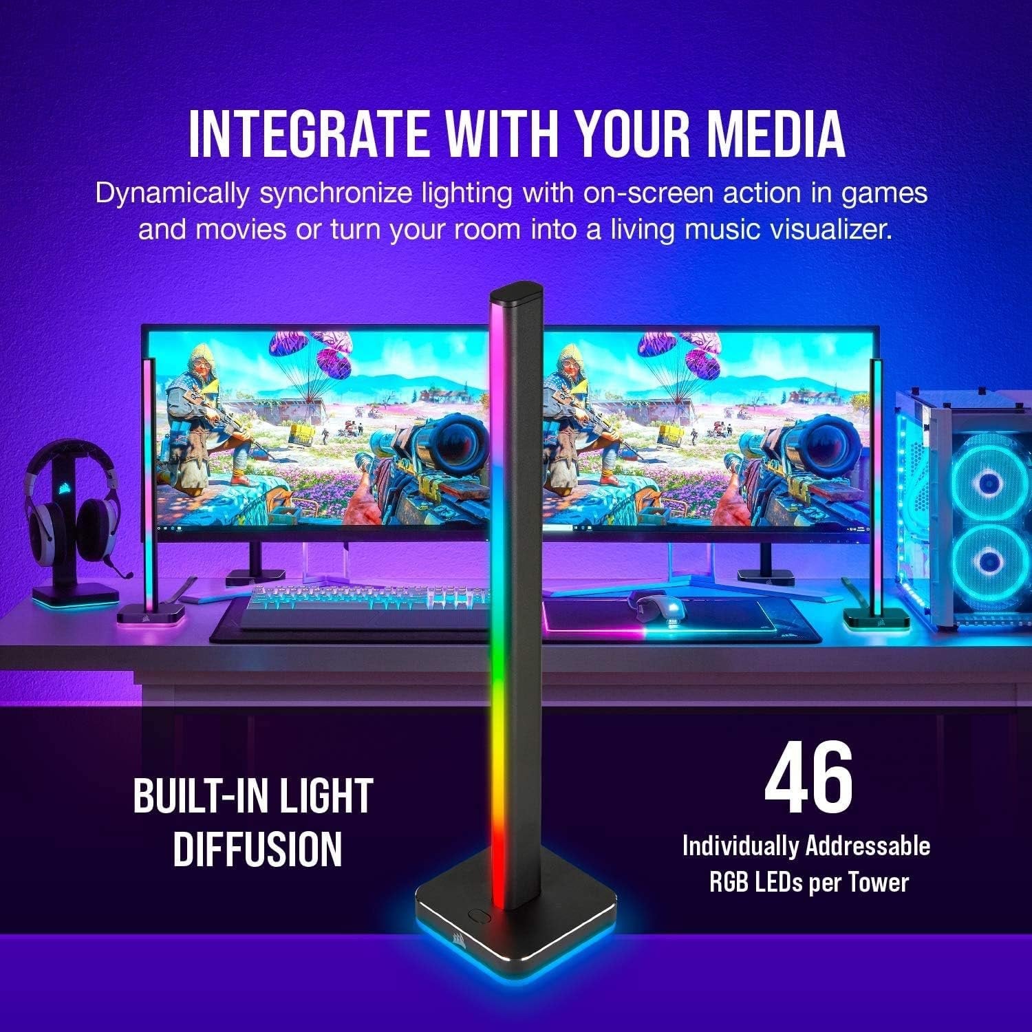 Corsair iCUE LT100 Smart Lighting Towers Starter Kit (Two 422 mm-Tall Towers with 46 Customizable LEDs Each, 11 Preset Lighting Profiles, Built-in Light Diffusion, Removable Headset Holder) Black