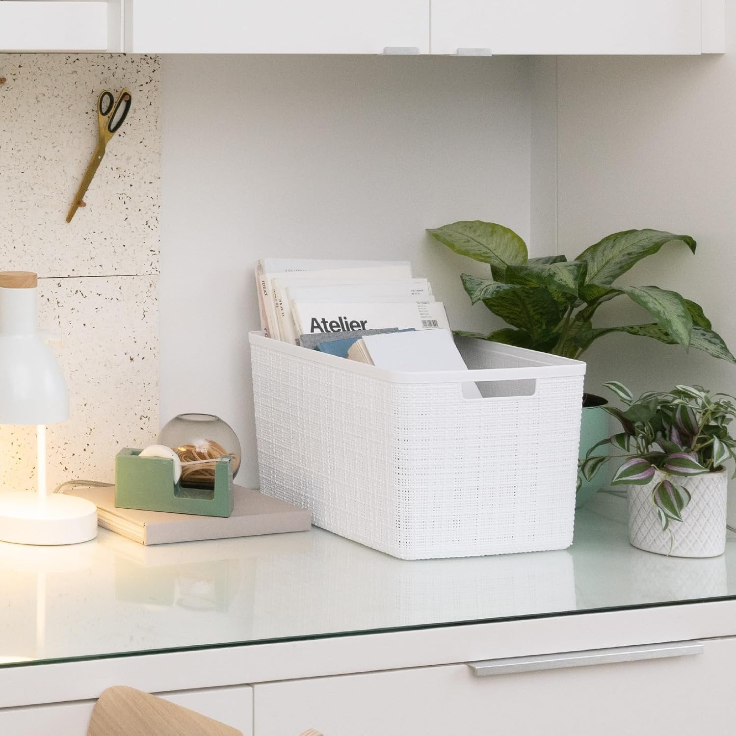 Curver Jute Decorative Plastic Organization and Storage Basket Perfect Bins for Home Office, Closet Shelves, Kitchen Pantry and All Bedroom Essentials