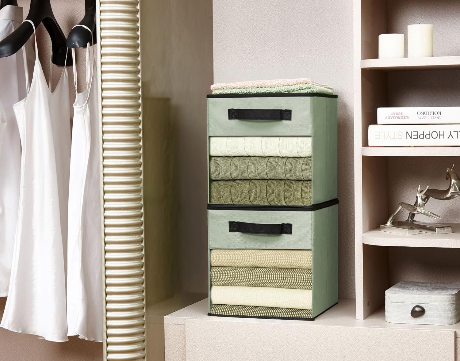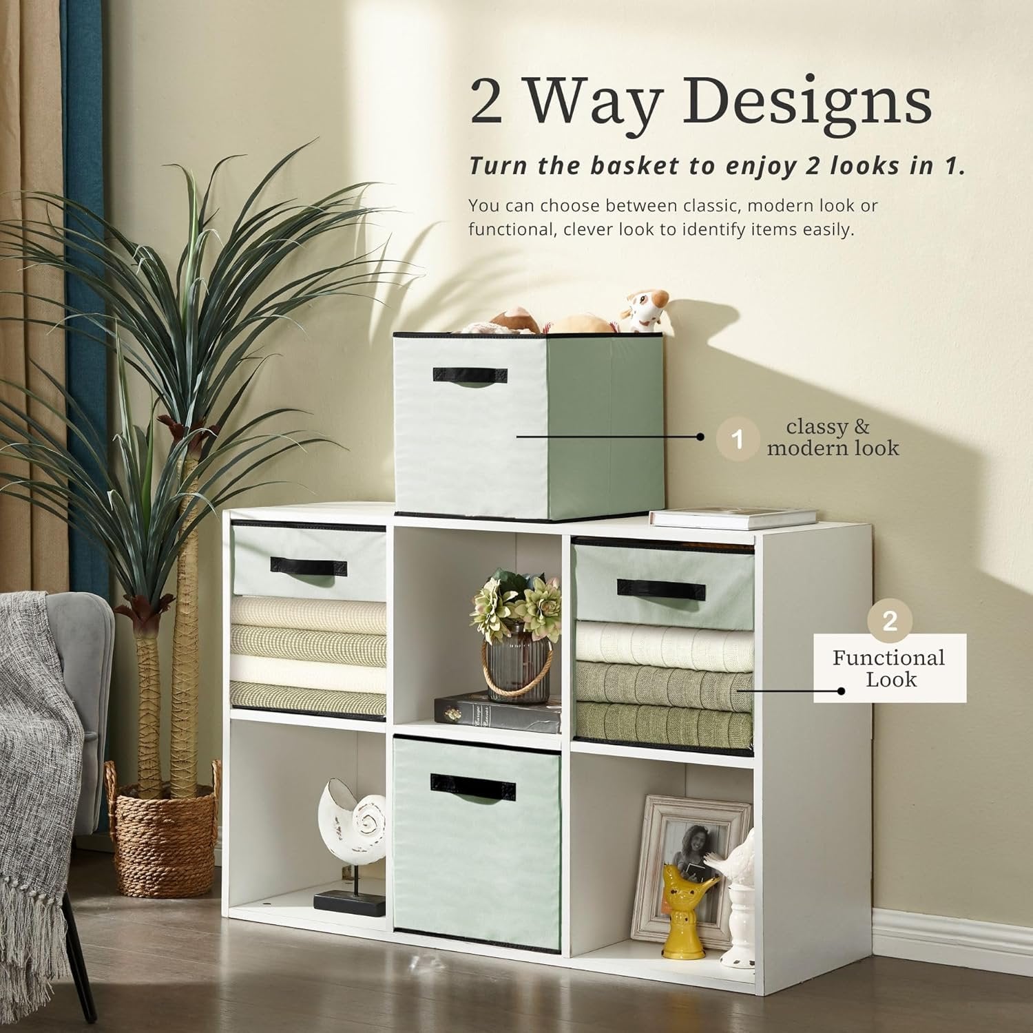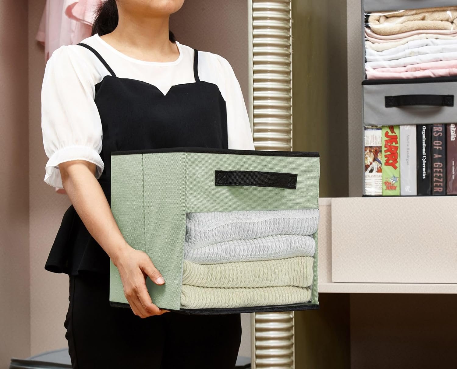 DECOMOMO Fabric Cube Storage Bin – Storage Bins with Clear Window, Toy Storage for Kids, Closet Organizers and Storage for Clothes (11 inch Cube, Green) - 6 Pack