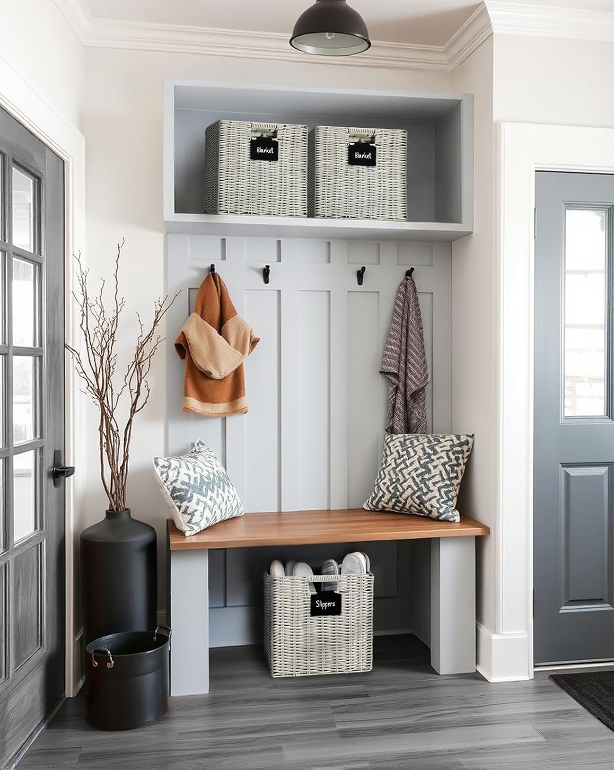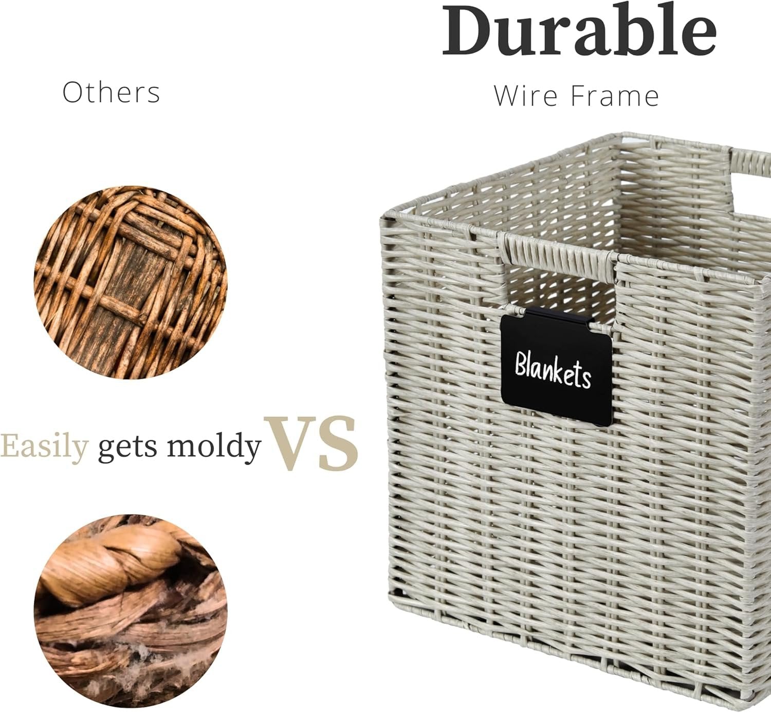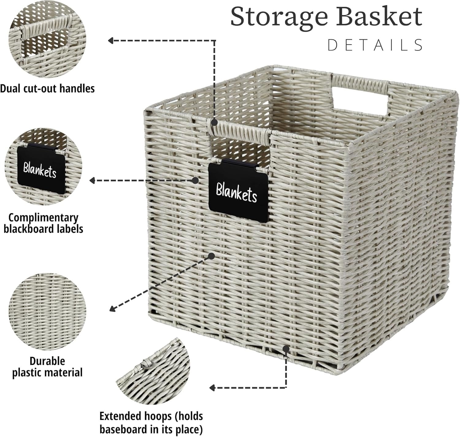 Plastic Wicker Baskets: DECOMOMO Cube Storage Baskets are made with woven plastic and supported by a metal frame. Plastic storage cubes come with complimentary blackboard labels and white marker with erasable ink making them reusable. Multi-Purpose: DECOMOMO's wicker storage baskets provide a solution to many storage needs; perfect for organizing nursery products, office supplies, clothes & linen, books in shelves, bedroom, living room, kids’ room, office, and more! DECOMOMO Storage Cubes - Set of 4. Dimensions (each): 12” (L) x 12” (W) x 12” (H) / (30.5 cm x 30.5 cm x 30.5 cm). DECOMOMO wicker baskets storage organization bins have perfect size for IKEA Kallax, Better Home, and Garden Shelving Unit (12-inch), ClosetMaid 1305, 8985, 8987. Care Tip: Our 12x12x12 cube basket is made with water-resistant plastic material and can easily be cleaned directly with water or damp cloth. If you run into any issue, please feel free to get in touch with us via Amazon. Foldable Design: Our storage baskets for shelves have a convenient foldable design which makes them easy to store when not in use. Simply push the base of the plastic bin inward from the bottom to fold it. Trusted Brand: Since 2017, DECOMOMO has been dedicated to superior storage solutions. We prioritize 100% customer satisfaction, backed by a money-back guarantee. Need assistance? Contact us on Amazon for a response within 24 hours.