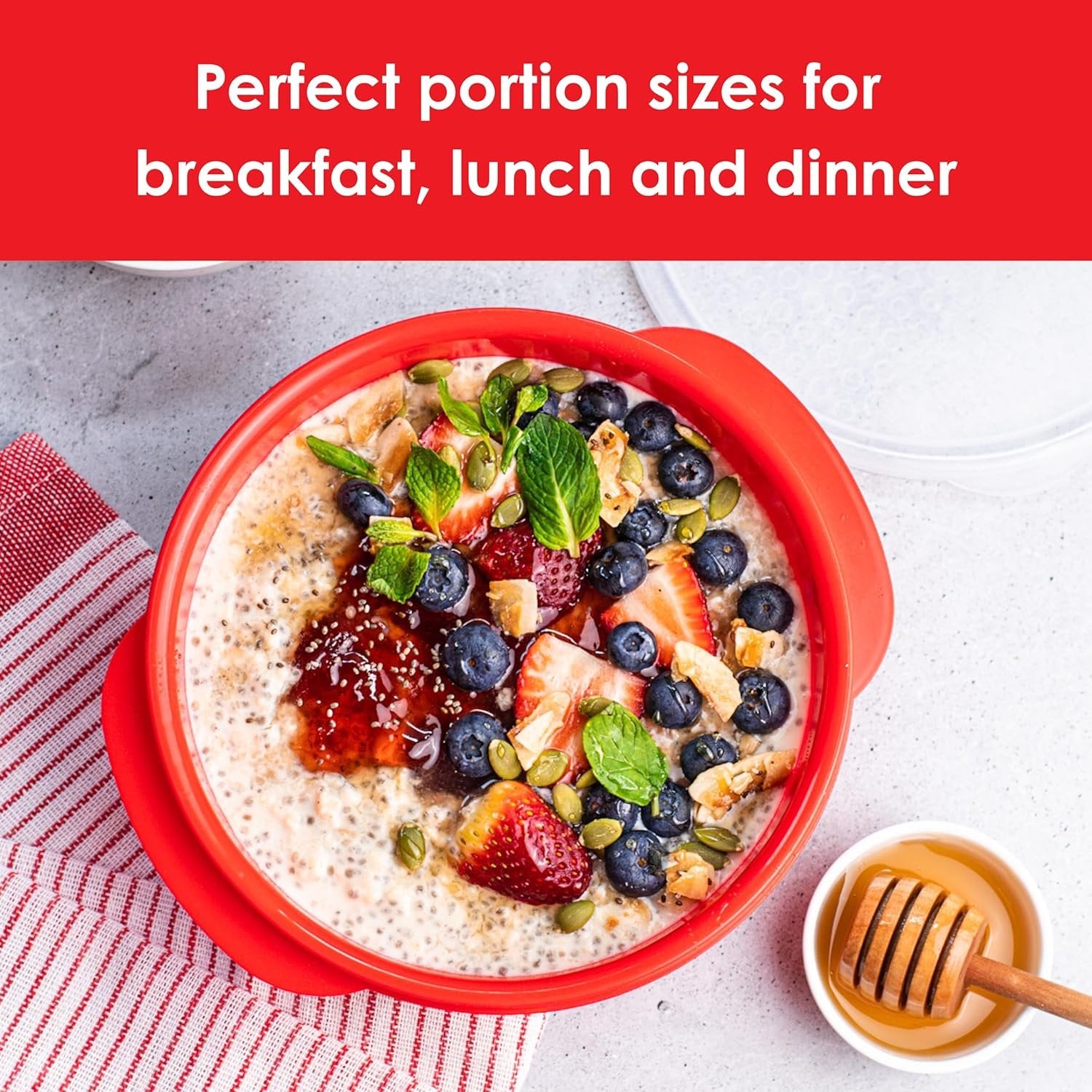 Microsafe Round Storage Container is specifically designed for quick microwave heating and cooking. Featuring stain resistant red bases, safe hold handles and a steam release lid vent, there is a size in the range to suit all microwave needs. Stack Microsafecontainers on top of each other in the microwave to heat numerous things at once or freeze meal portions in the containers for reheating later. Comes in red colour. Capacity: 750ml.