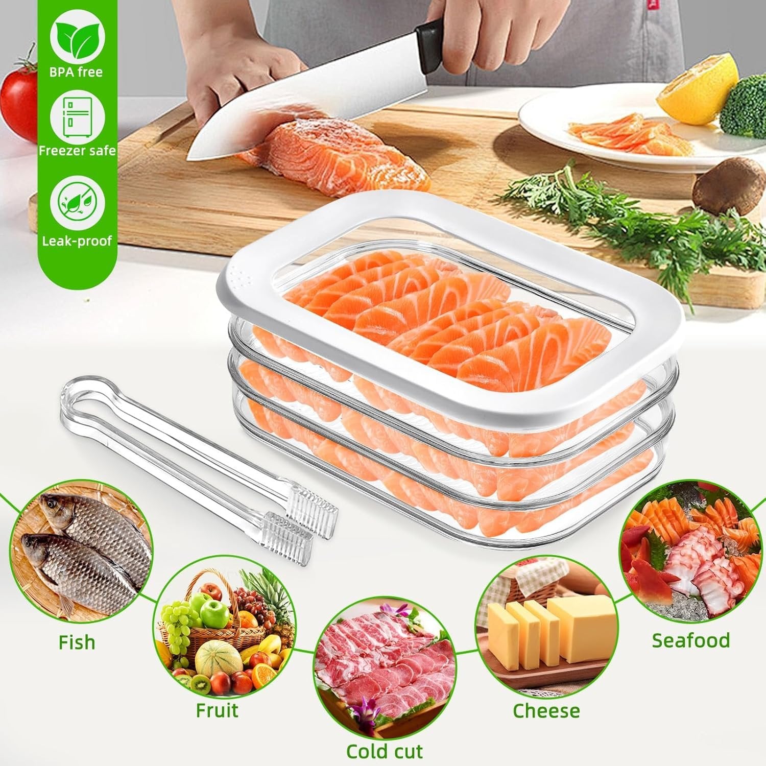 [Versatile Fridge Organizers] Deli containers securely store deli meats, cheeses, fruits & vegetables. 3-layer transparent container boxes Ideal as bacon container for fridge and cheese storage with leak-resistant design. Please do not put it in the dishwasher. [Multi-Purpose Fridge Storage Solution] Perfect for organizing deli meats (bacon, salami, turkey), sliced cheeses, cut fruits/vegetables, and leftovers. Designed to fit neatly in refrigerator organizers for space-efficient storage. [Stackable Design & Easy Cleaning] Stackable containers save fridge space. The rounded corner design can effectively prevent dirt and grime from accumulating and also make cleaning easier. Effortless cleaning and reusable for sustainable kitchen use. [Transparent Design] Deli Containers with Lids size is: 8.86in*3.35in*6.3in,The transparent design can offer you a good view and help you manage your refrigerator better.
