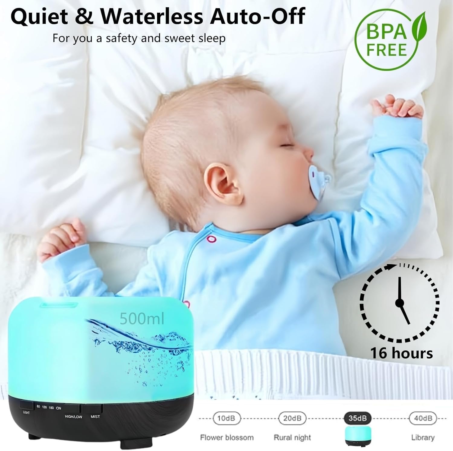 【Waterless Auto-off Diffuser & Great Gift Idea】: This aromatherapy diffuser for bedroom is designed with waterless auto-off function. The small humidifiers for bedroom will turn off automatically after 5s when it's water runs out,more safety. This essential oil diffuser for bedroom uses ultra-high grade, safe, and eco-friendly PP materials and with a combination of style, design and function like that, which is a thoughtful and room accessories or a house warming gifts for your family, friend and colleagues on Thanksgiving, Christmas, Birthday