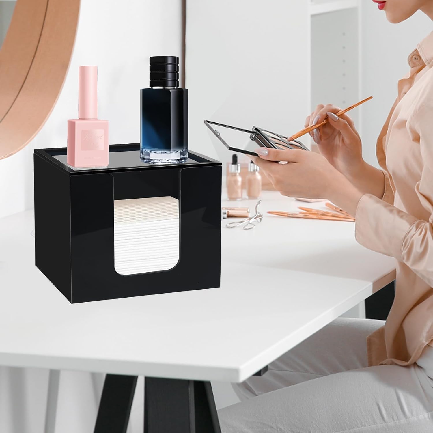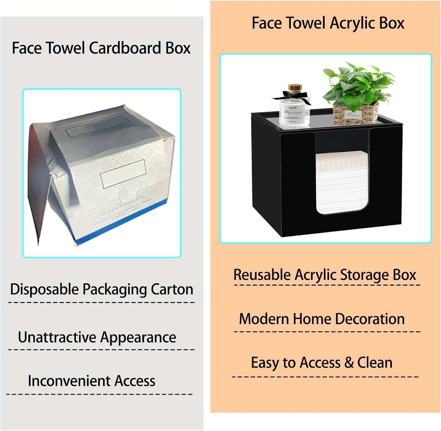 Disposable Face Towel Holder, Acrylic Facial Towels Storage Box Organizer Container for Clean Towels XL, Black Bathroom Organization Home Decor