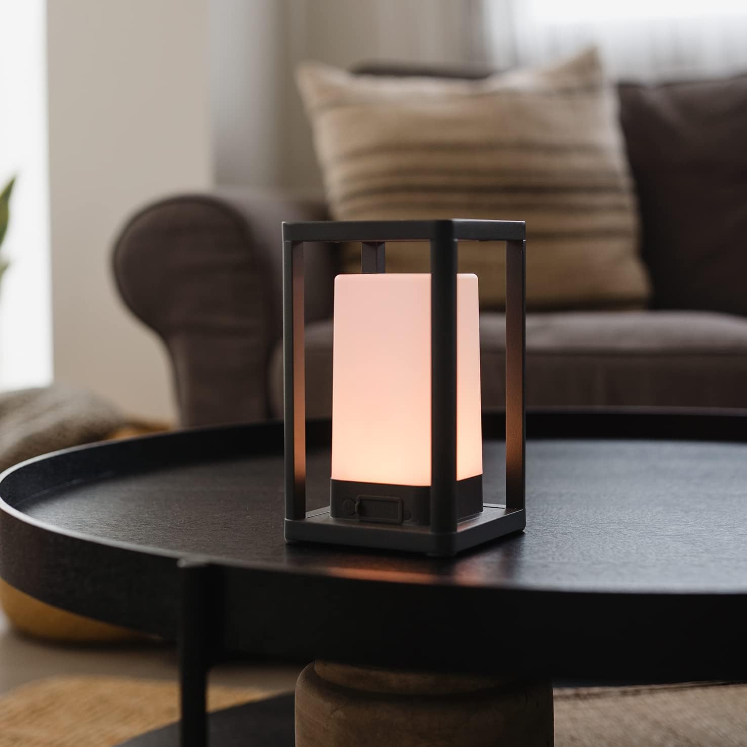 Light source: SMD LED RGBW 3000K 400Lm CRI80 (5W) Bulb included in the product. Controllable via Tuya Smart App (compatible with Google Assistant or Amazon Alexa voice control) Compatible with IOS and ANDROID.Includes 80cm USB Type-C charging cable. 5V 1A charger (not included) On / off button at the bottom visible along with USB and Type-C input and charging indicator. This product contains a light source of energy efficiency class G. ✔️ Charging instructions: Flashing red = charging and steady red light = charging. ❌ The product cannot be used while charging. 👍 By making good use and following the charging guidelines, we extend the life of the product. Dimensions: Height 20.3cm x Length 12cm x Width 12cm Installation areas: terraces, gardens, porches, patios, balconies. Can be used indoors and outdoors. It is a great alternative for restaurants, private relaxation areas or restaurants. VENICE is a very light and easy to carry portable table lamp to light up those moments with our friends, partners and family.