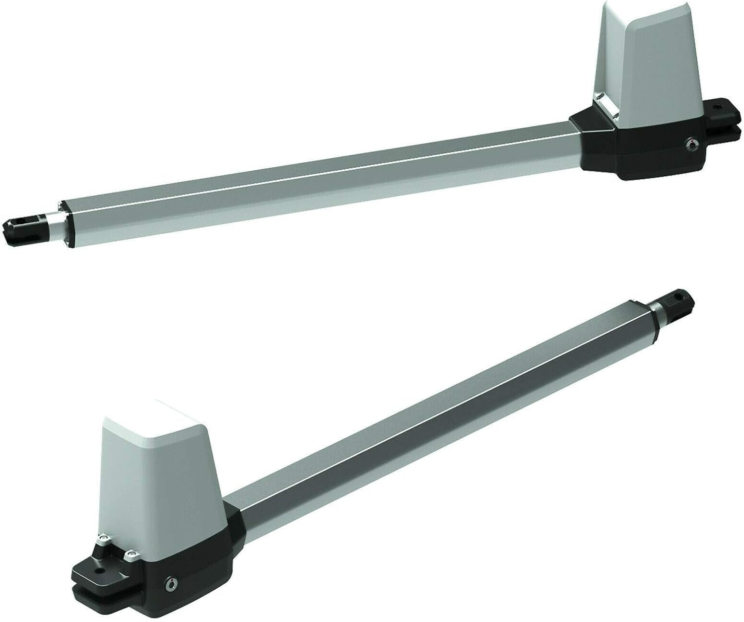 - - - - Product Information Heavy Duty Quick Operation Aluminum Telescopic Linear Actuator Engineered to be Fast, Powerful and Quiet. The Heavy Duty 24V actuator is comprised of an aluminum piston housing and a stainless steel piston with an elegant light grey powder coat for a neutral non-obtrusive feel. Universal Left and Right Side installation. Simple 2 wire low voltage system making this motor a breeze to install for all skill levels. The system can handle light and heavy gates up to 175kg maximum weight each gate or up to 3m maximum length for each gate. Engineered to last Perfect gear cuts allows for an almost silent operation with no movement in the gear system. Sealed bearings at each end of the gear set for a 100% smoothness and consistency every single cycle. Ribbed casing for extreme rigidity and the ultimate holding strength with no flex whatsoever.Supplied Kit Contents 2x APC-T550 Actuator Kit including gate and post brackets 2x 6m Cable Roll for Actuator to Control Box 1x 24V Control Box with Pre-Wired Power Lead 2x Keyring Remotes 2x Sun Visor Remotes 1x Wireless Keypad1x 65mm High Centre Driveway Rubber Gate Stop with Steel Base Heavy Duty Quick Operation Aluminum Telescopic Linear Actuator 4 Remote Controls and Wireless Keypad Access Control Engineered to Last | Gear Type: Metal Lead Screw, Mixed Composite Emergency Clutch Override Weatherproof Control Box With a Seal