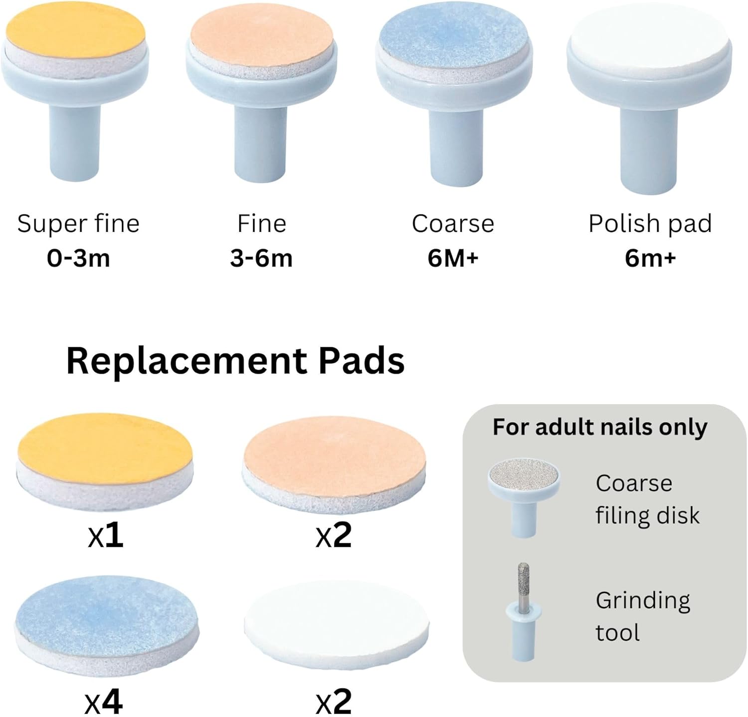 Dreambaby Baby & Me Nail Care Kit - 16 Piece Electric Nail Trimmer for Babies - Comes with 6 Shape & Trim Options and 8 Replacement Pads