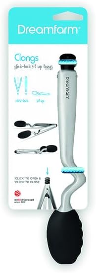 Dreamfarm Clongs Grippy Silicone & Stainless Steel Kitchen Cooking Tongs with Click-Lock Open & Close - 12" Black