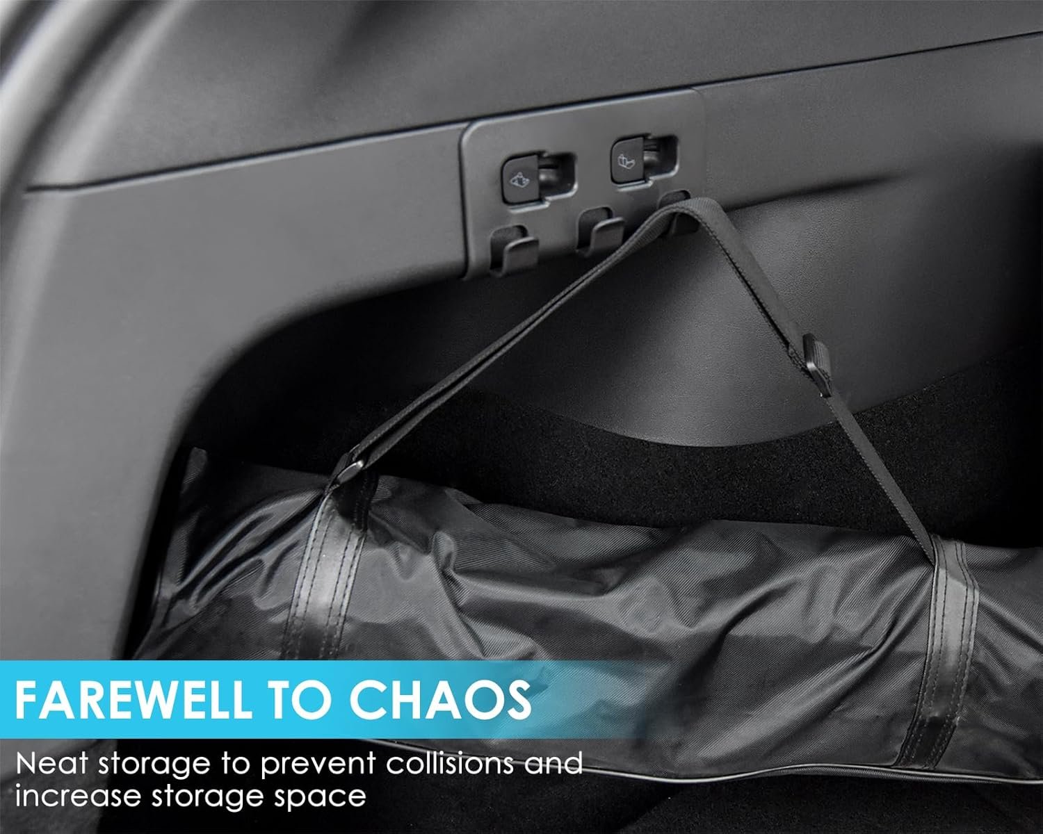 Perfect custom design - This trunk hook is tailor-made to be compatible with 2021-2023 Tesla Model Y 5-seater models to ensure a perfect fit (*Not suitable for 7-seater models). It has enough length and width to securely hold various bags Strong load-bearing capacity - Made of high-quality ABS material, it has a strong load-bearing capacity and can carry more than 15 kilograms of weight. It is not easy to deform and is very durable Maximized space - This Tesla Model Y hook can be used to hang wallets, data cables, masks, towels, key rings, clothes, shopping bags, and other items, which improves the utilization of space in the car and makes your car tidy and tidy sequence Concealed design - The small design of the hook does not take up extra space, it can be installed concealed, it will not affect the use of the button, ensures that the shopping bag will not roll, and the installation is simple, just open the trunk, insert the hook into the trunk button, no sticking or need any tool Package includes: Model Y Trunk Hook x 1