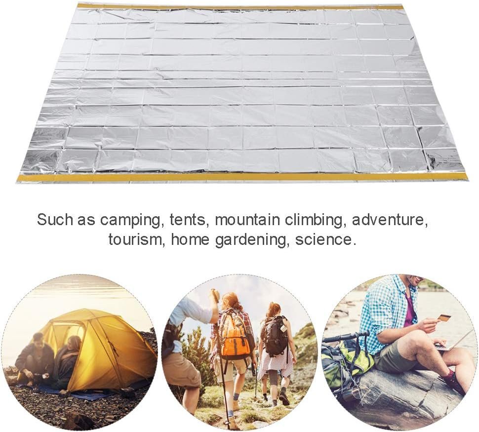 Used in low temperature environment, it can keep its own heat. Adding a layer to the sleeping bag to improve the insulation ability is good for ensuring a great sleep temperature. When you see the injured person wrapped in a thermal blanket, which indicates that the person has been injured and has undergone primary first aid, medical staff will conduct further examination and treatment of it, and the chance of being injured is increased. A survival tool in the wild. When a person is killed in the wild, he wraps a thermal blanket on his body and uses its reflective effect to help rescuers find targets. Suitable for outdoor activities such as camping, tents, mountain climbing, adventure, tourism, home gardening, science. Made of high-quality PET aluminum-plated (silver) film, durable.