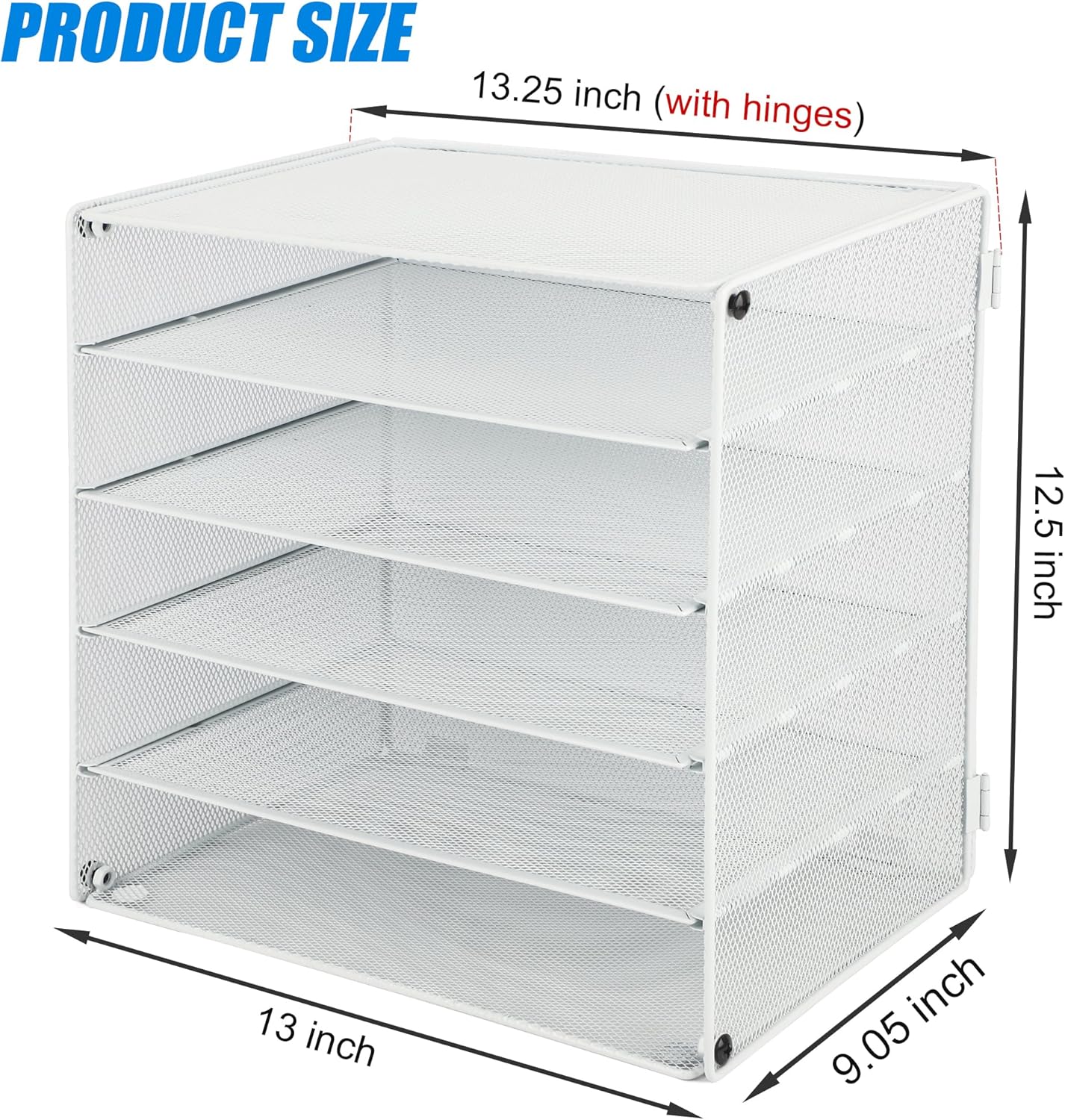 EASEPRES 5 Slot Mesh Desk Organizer Tray, File Paper Letter Folder Holder Desktop Paper Sorter Mail Organization Rack Storage Accessories, for Office Home School Classroom, White