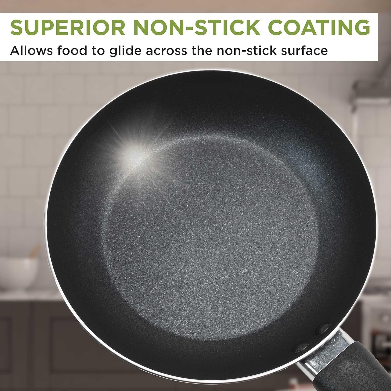 EVERYTHING YOU NEED TO COOK YOUR FAVORITE MEALS: Set includes 8” Fry Pan, 10“ Fry Pan, 10” Square Griddle Pan, 5 Quart Casserole with Lid, 1 Quart Saucepan with Lid, 2 Quart Saucepan with Lid and 3 Bamboo Tools. BUILT TO PERFORM: This cookware set performs in the kitchen, standing up to large family meals, gourmet cooking and big breakfasts with ease. Designed for extreme durability, fast and even heating and the ultimate food easy-release. EASY TO CLEAN: All of the cookware and bakeware in this set are 100% dishwasher safe, saving you time on clean-up after your meal. SUPERIOR NON-STICK COATING: The non-stick surface effortlessly stands up to regular, everyday use and allows food to easily slide across the non-stick surface, allowing for easy cooking and cleaning. VENTED LIDS: Tempered glass lids feature a steam vent to allow you to keep an eye on your food while it’s cooking while also allowing steam to escape, allowing your foods to have the perfect balance of moisture in every dish.