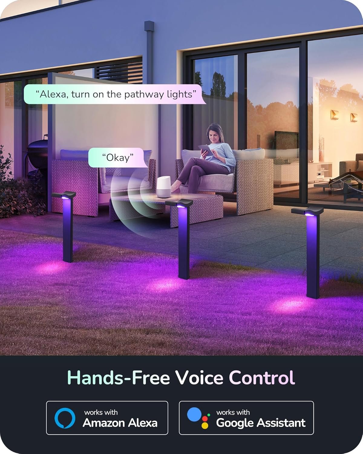 [RGBWW Color Changing] 3 color modes available: RGB Color Mode for colorful ambiance with 16 million RGB colors, 3000K Warm White Mode for a cozy atmosphere, 6000K 300LM Cold White Mode for bright outdoor lighting; light up your landscape and create vibrant and colorful light effects with EDISHINE outdoor spotlights [Smart APP & Voice Control] No need for manual control, simple and convenient control landscape lighting through the Dewenwils APP (2.4Ghz WiFi Network Only), control lights effortlessly with voice commands via Alexa or Google Assistant [IP67 Waterproof & Durable] Made of durable die-cast aluminum and waterproof covers design; our low voltage landscape lights have excellent heat dissipation, can withstand harsh weather like heavy rain, snow, or direct sunlight; simple and stylish cylindrical head design, great for outdoor landscapes lighting [Easy to Install] Includes ground stakes and quick-install wire connectors for each outdoor landscape light, safe to use and stay firmly in place; lamp head angle can be easily adjusted up and down, allowing you to customize the lighting direction to create the perfect outdoor ambiance. The distance between lights can be freely set according to the scene, making the installation more flexible