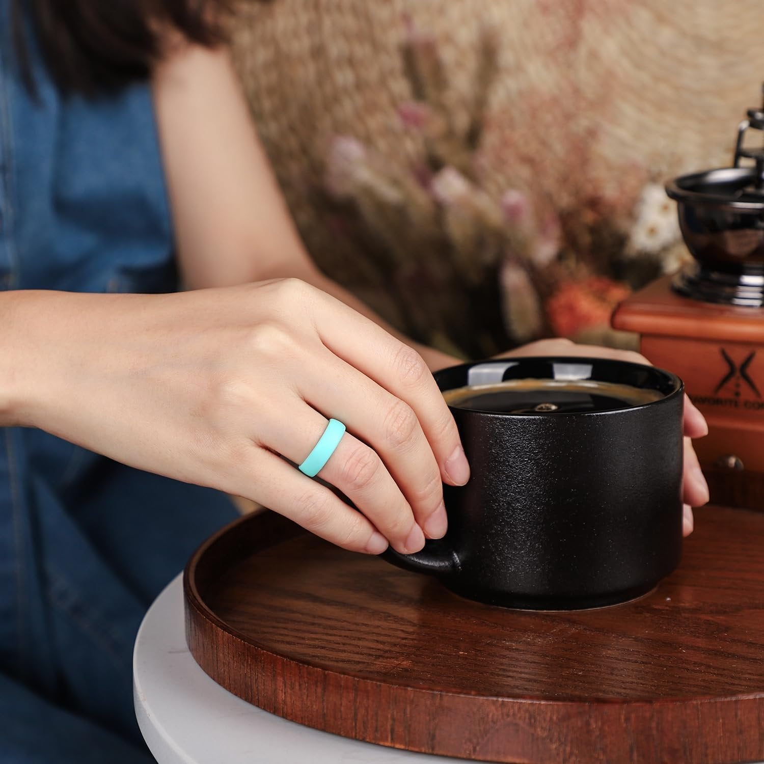 Egnaro Inner Arc Ergonomic Breathable Design, Silicone Rings for Women with half sizes, Women's Silicone Wedding Band,5.5mm Wide-2mm Thick