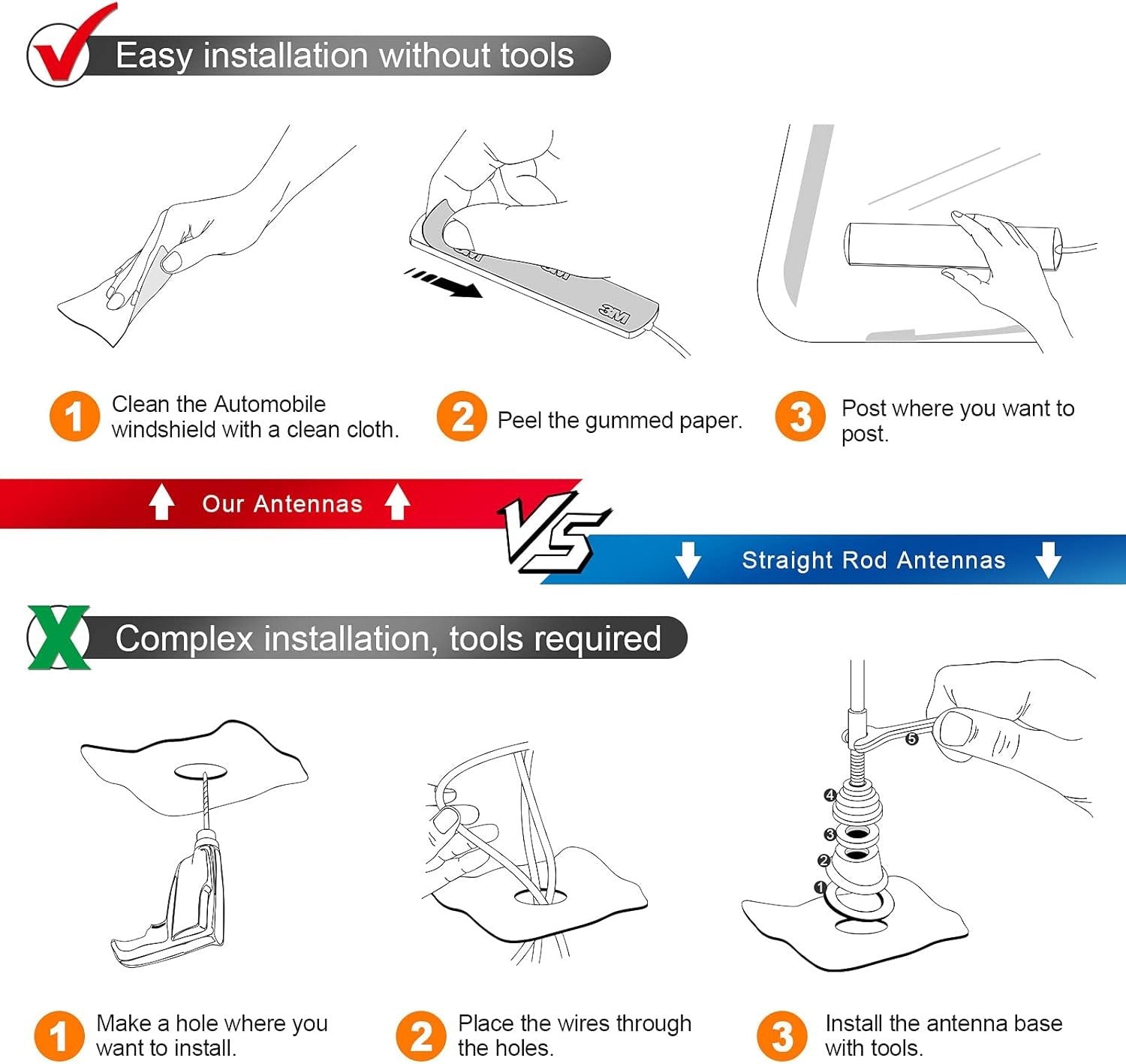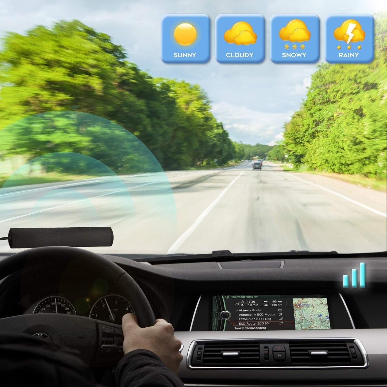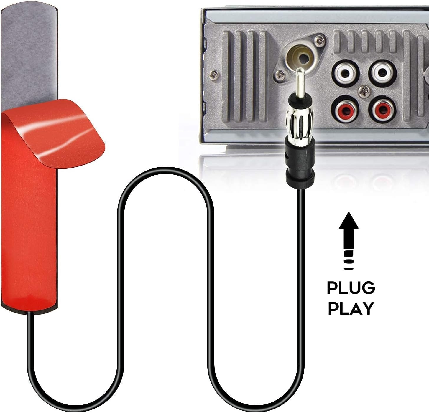 Eightwood Car Stereo FM Radio Antenna, Hidden Windshield Antenna, DIN Plug Adhesive Patch Antenna + DIN Female to ISO Adapter for Vehicle Car Truck Stereo Receiver Head Unit FM HD Radio