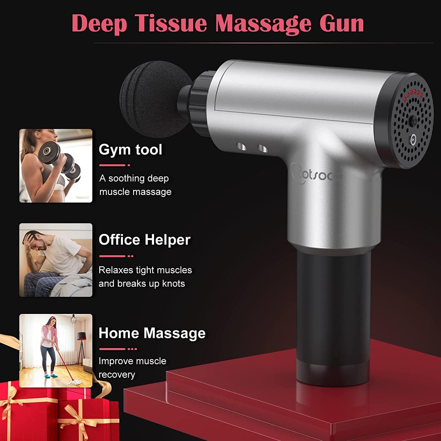 Electric Massage Gun, Rechargeable Deep Massager Massager with 4 Massage Heads for Body Pain Relief and Sports Body Massage