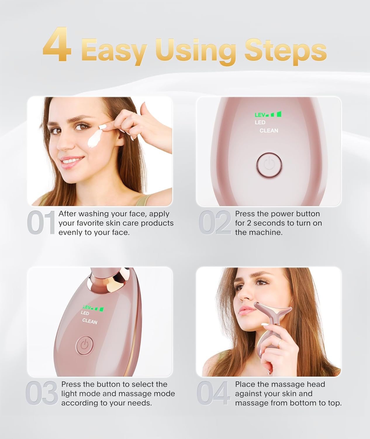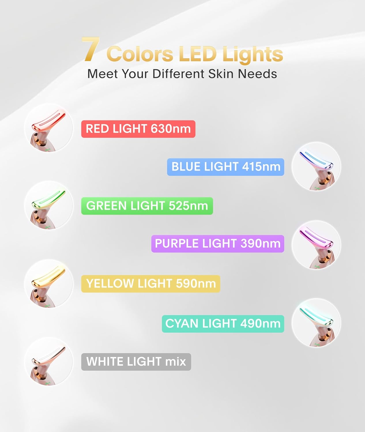 ELISHINE 7 Color Light Based Face-Neck-Massager - Facial Massager for Skin Care, Rose Gold
