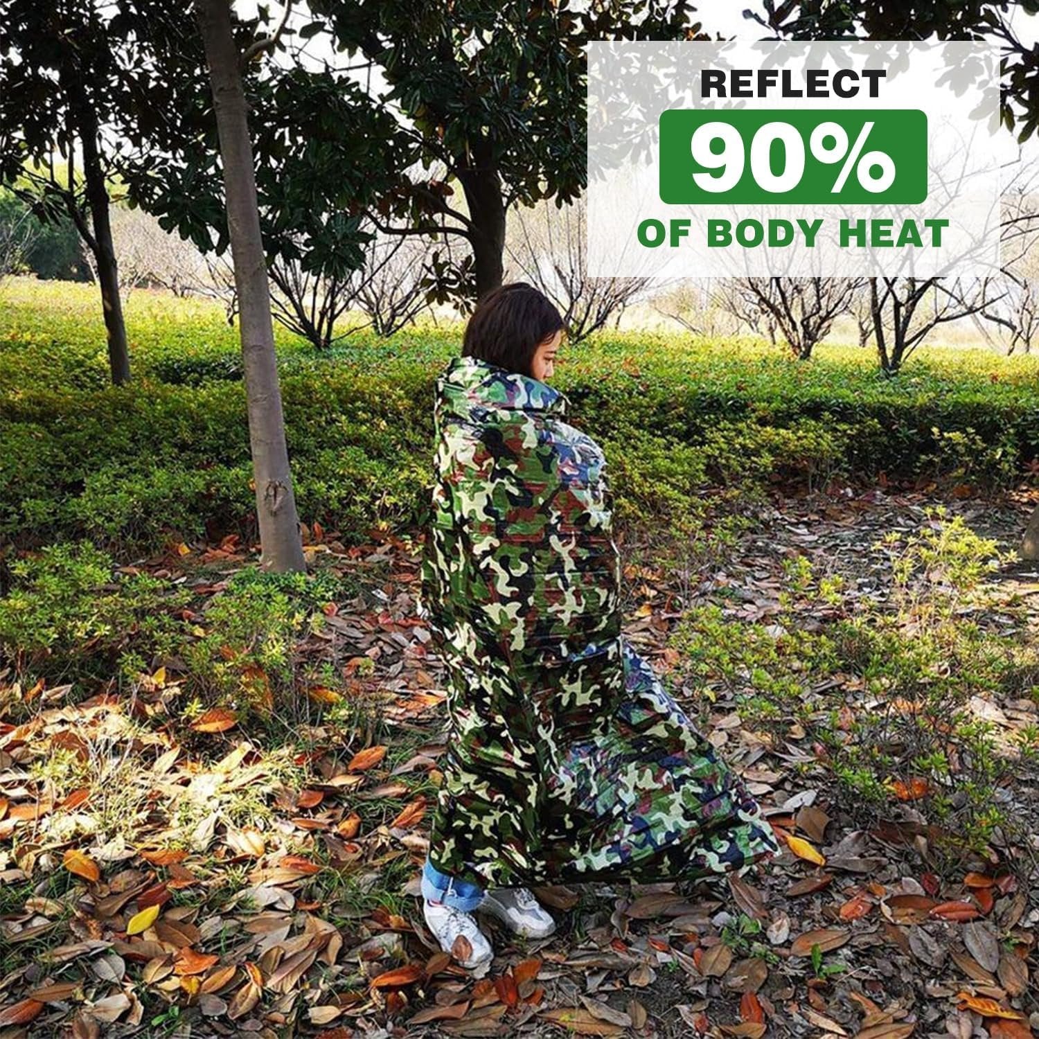 Emergency sleeping bag and survival sleeping bag: the survival sleeping bag provides heat retention and is insulated in an emergency. In the event of a breakdown, the refuge can be set up quickly and efficiently. This is an important part of a survival or camping kit to stay warm at a critical moment. Ultralight and foldable: the emergency sleeping bag outdoor is made of aluminised PE film (weight: 120 g, thickness: 0.026 mm), it is lightweight, waterproof, and easy to carry. The emergency blanket can be folded into a small, it can be stored almost anywhere, so you have plenty of space for other equipment in your backpack. Use for signal rescue: emergency survival rescue blankets, equipped with signal whistles and nylon pack sack. Sleeping bag bright orange outside can be used as a signal device to attract other attention, to be a necessary survival tool. Outdoor essentials: the emergency sleeping bag is not easy to tear, has good waterproofing, strong wind resistance and strong insulation performance. It protects against cold and heat, saves more than 90% of radiant heat and prevents hypothermia and resists it by reducing the heat loss of the body. Provide comprehensive protection from rain, wind and snow. Suitable for multiple scenes: Perfect tool to complement the first aid kit, it is important for outdoor activities, adventure, hiking, and travel, it can be used as an emergency rescue blanket, sleeping bag, picnic blanket, an indispensable pack for climbers, mountaineers and walkers.