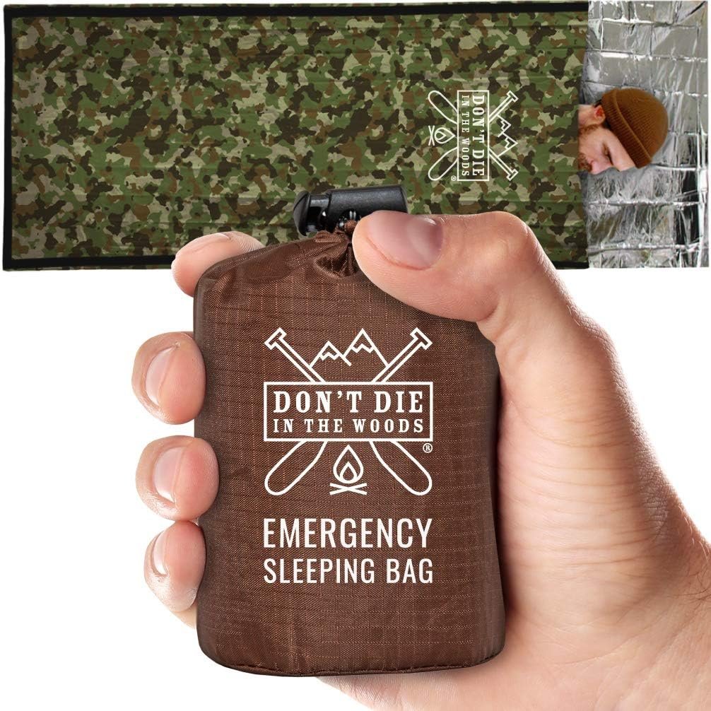 TOUGHEST MYLAR SLEEPING BAG ON EARTH – Our tear-resistant, extra-thick HeatFlex mylar is stronger and more flexible than ordinary space blanket mylar. We’ve added a hood section to protect your head and reinforced tape seams to create a durable, reusable survival bivy you can use alone or to enhance your existing sleeping bag. ENHANCE YOUR EXISTING SLEEPING BAG – Worried about unexpected cold or wet weather? The DDITW Emergency Sleeping Bag reflects up to 90% of body heat to boost the heat retention of your sleeping bag, and the waterproof material protects your sleeping bag from outside condensation. BUILT-IN HEAD PROTECTION – Studies show you lose up to 10% of body heat through your head. Our innovative hood design helps you retain this body heat for total body protection. This exclusive feature is only available from Don’t Die In The Woods. ULTRALIGHT, WATERPROOF, & SUPER COMPACT – Hate carrying extra weight? It’s so small and light, you’ll forget it’s even there. We’ve designed the DDITW Emergency Sleeping Bag with the perfect balance of durability & weight at only 7 ounces (the weight of a small apple). Stash them in each of your cars and backpacks and always be prepared. PROTECT THE WILD PLACES WE LOVE – We donate a percentage of profits to conservation efforts around the world, including 1% For The Planet, The Conservation Alliance, and many more. 100% SATISFACTION GUARANTEED – We stand behind our products. You won’t find a tougher mylar survival bivy anywhere. Guaranteed.