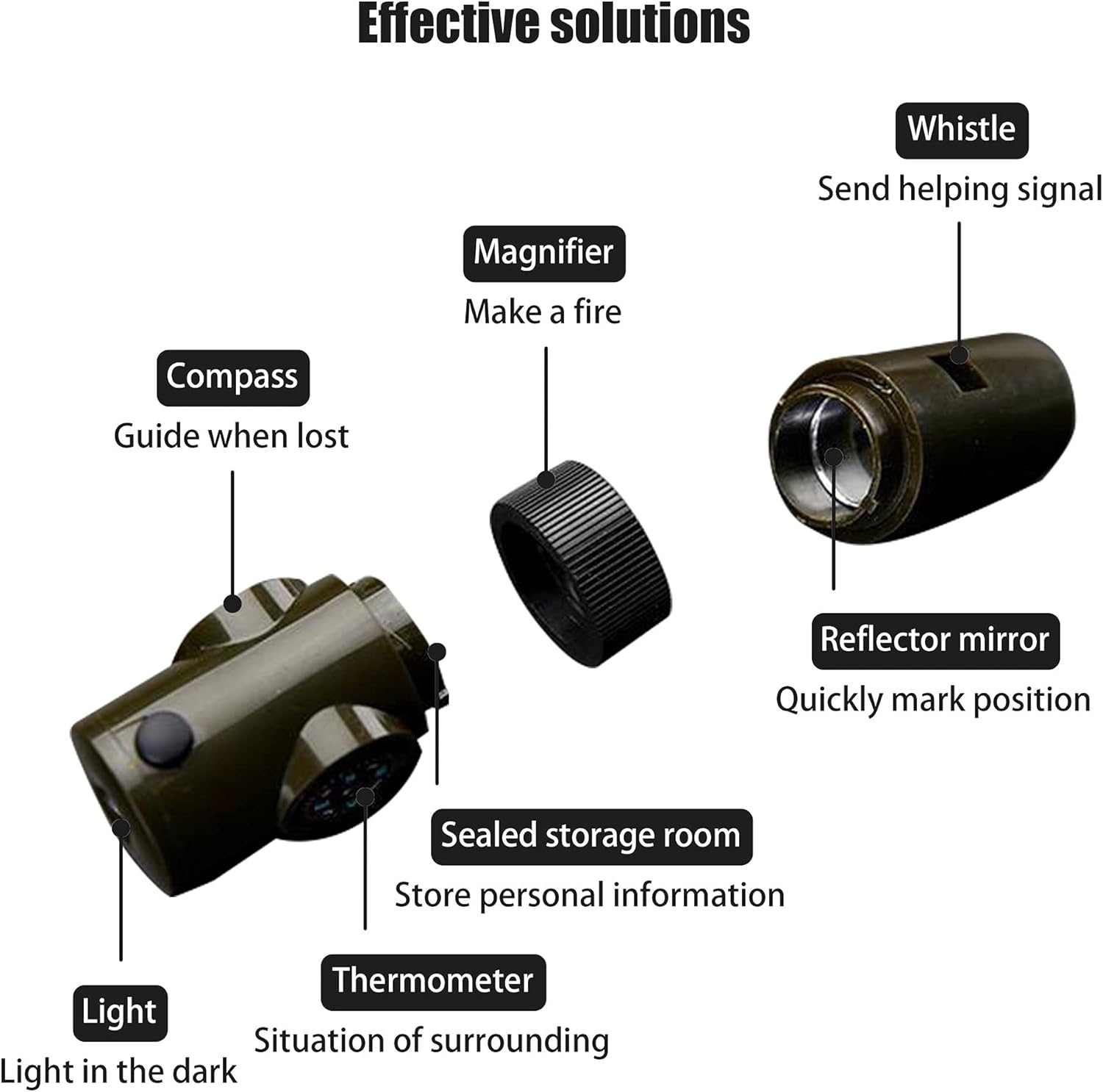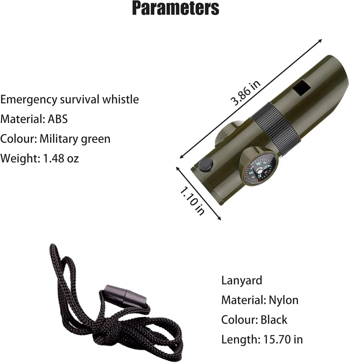 【Premium Materials】Shaoduoli emergency survival whistle is made of high quality ABS,which is tough and durable; The high decibel and highly volume design allows the whistle to make a loud sound with a gentle blow; It is compact and small,so that easy to carry, falling resistance and shockproof; All parts are also ergonomically designed to ensure mini size without losing its performance and convenience; High quality materials make is resistant to extreme cold or hot weather in harsh environments. 【Innovation Design】Shaoduoli emergency survival whistle adopts 7 in 1 multipurpose design;It is detachable and assembled;When not in use,it is a whole for easily carrying and storage;When in use,you can quickly remove the required parts;It consists of whistle,compass,thermometer,light,magnifier,reflector mirror,sealed storage room;The lanyard makes you can wear it on your neck/wrist/backpack;We also presented a protective cover can be installed on the belt to provide you with more use scenarios. 【Effective Solution】Shaoduoli emergency survival whistle is absolutely helpful assistant for outdoor;The whistle can send helping signal in an emergency;The compass can guide you when you lost;The thermometer accurately tells the situation of surrounding;You can use the magnifier to make a fire;You can use the light in the dark;When rescue team come,the reflector mirror can help you quickly mark your position;You can put a survival note containing personal information in the sealed storage room. 【Broad Application】Shaoduoli emergency survival whistle is a perfect gadget for any outdoor activities,such as expedition,exploration,wild adventure,hiking,camping,climbing,cycling,skiing,hunting,etc; It can serve explorers,adventurers,navigator,coaches,instructors,athletes,referees,teachers,life guard,forest protector,safety inspector,etc; At the same time, it can also used for children simulation training,military training,sports training,pet training,fire drill,self defense and protection. 【Premium Service】Shaoduoli will provide 24 hours of professional & nice customer service and solve your problem wholeheartedly; We are convinced you will love your new emergency survival whistle; Please feel free to contact us any time when you have any problems with the product.