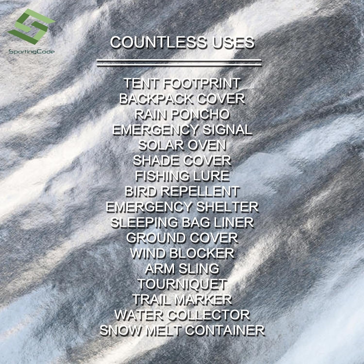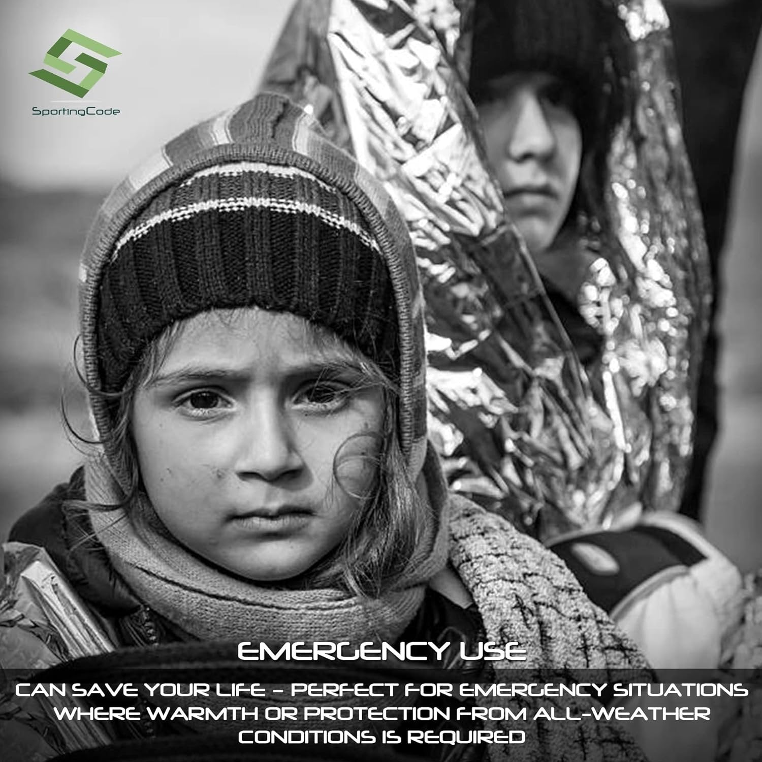 6-PACK EMERGENCY BLANKETS -- Keep safe on your next trip with Sportingcode’s Thermal Blankets. These reusable, moisture-proof, windproof and waterproof blankets are for hiking, camping, traveling, climbing and more!Keep warm and help prevent hypothermia and shock in emergency situations." DESIGNED FOR EXTREME CONDITIONS - Keeps 90% Body Heat, Waterproof, Blocks Rain, Snow and Moisture LIGHTWEIGHT AND TRUSTED QUALITY -- Our Survival Blankets are made from military-grade, 12 micron aluminized polyethylene mylar that works for conserving body heat in emergency survival situations. Lightweight and durable enough to withstand extreme weather conditions. SUITABLE FOR COUNTLESS USE -- From survival blanket to fishing lure, backpack cover, emergency shelter, trail marker, water collector, wind blocker, ground cover, rain poncho, and more, Survival Blanket got you covered! CONVENIENT AND EASY TO PACK -- Sized 52“ x 82“ and weighs 2 oz, our survival blanket is your suitable survival buddy. Folded flat and easy to pack, make sure to have it inside your backpack and emergency kit!