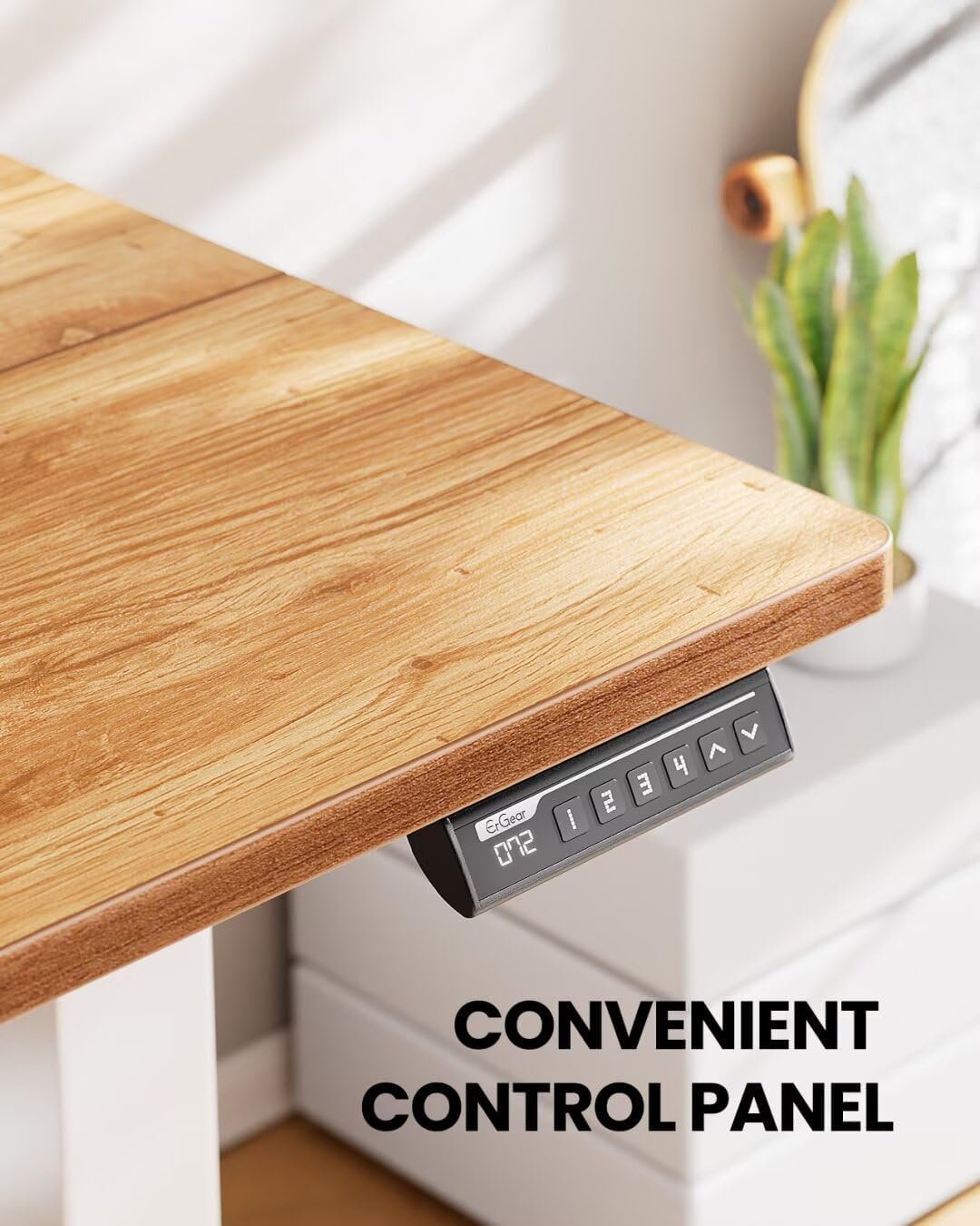 ErGear Electric Standing Desk, 48‘’x24‘’ Height Adjustable Sit Stand up Desk, 4 Memory Computer Home Office Desk Standing Table with Splice Board (Light Vintage Brown)