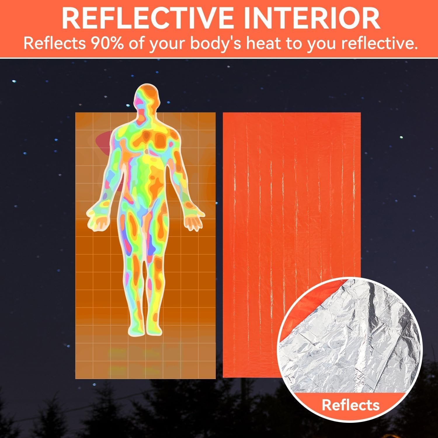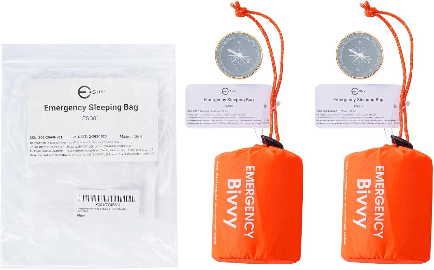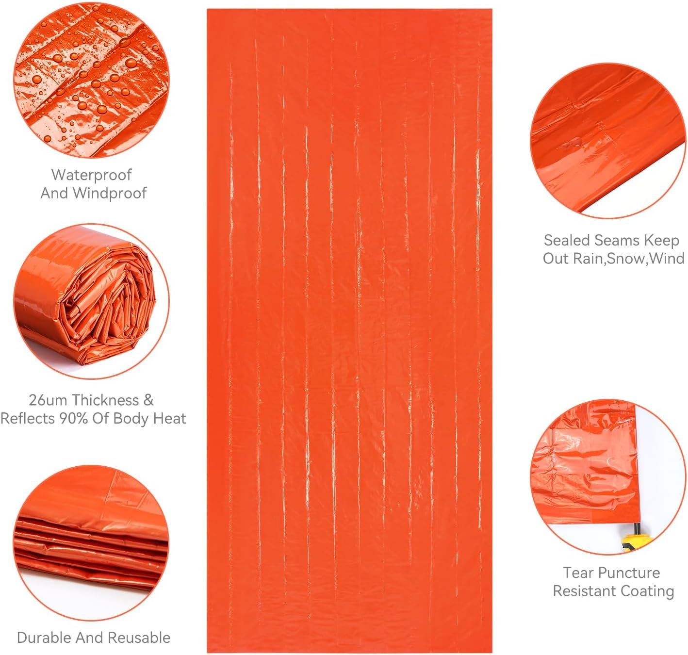 【A Life Saver in Emergencies】: This Emergency Sleeping Bag is an invaluable asset when the chips are down. It's a must have for emergencies such as disaster, and automobile danger, and more--you'll never know when it'll come in handy. It also can serve other functions such as an emergency blanket, ground cover, rescue or distress beacon, poncho, rain tarp or sun shade. 【Durable Mylar】: The Mylar shell chases the chill out and provides superior warmth and comfort for you even under harsh conditions or when your body is weak. It's soft, waterproof, windproof, tear proof and puncture proof. Rain, shine, snow, or something in between- this bag can handle it all. 【Ultra-bright Reflective Surface】: Trapped in the dark? Let this Survival Blanket Bag light the way. The bright orange emergency sleeping bag and its reflective surface will provide crucial visibility and help first responders find you. 【Pack & Go Storage Bag】: Keep your thermal bivy sack clean and compact with the included storage bag. It also features a strap for easy carrying or hanging on your motorcycle or in your car! It can be stored and used together with the emergency radio and the first-aid bag. 【Precise Compass】: Coming with the 2pcs compass, the anti-interference compass is stable, highly accurate and reliable enough to guide you to move along the right way
