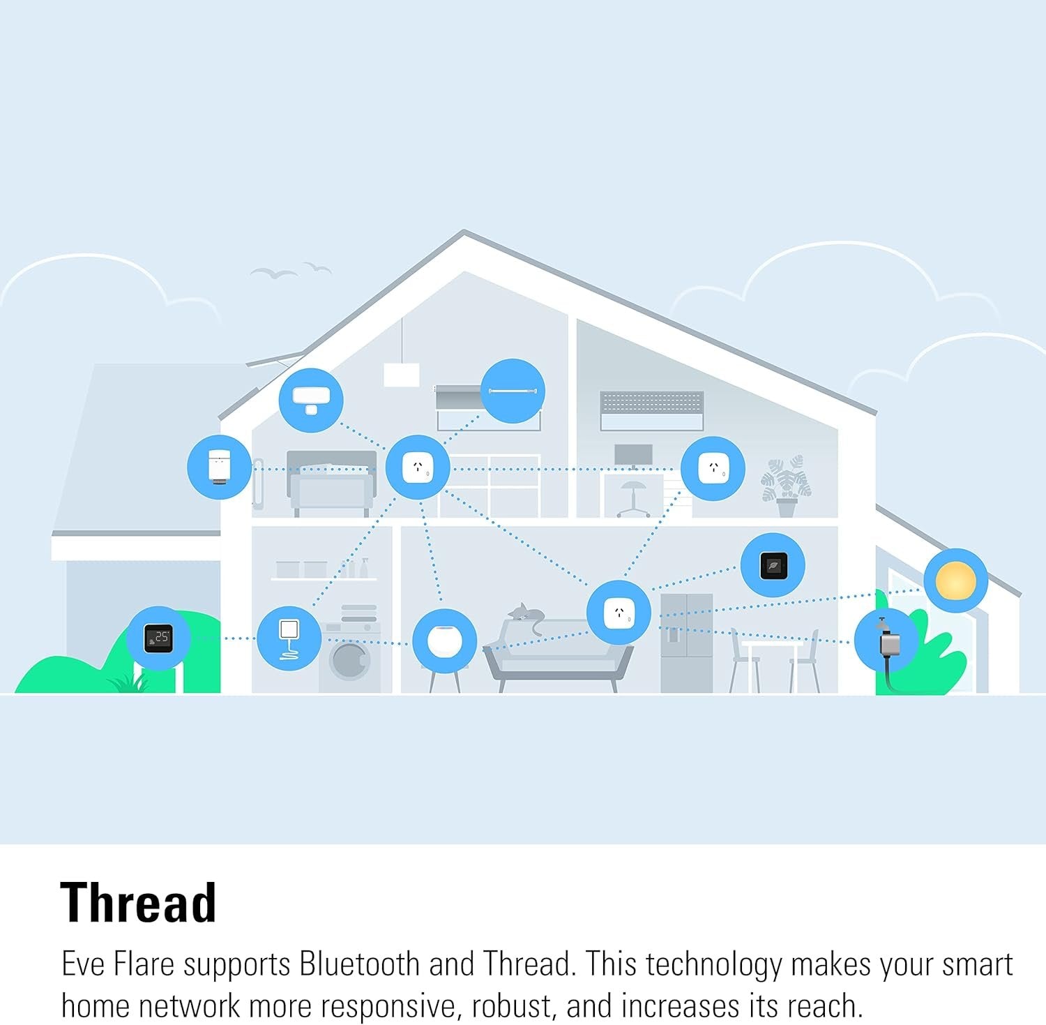 Eve Flare requires iPhone or iPad with the latest version of iOS/iPadOS. Beautiful ambience lighting in any color and for any space you want – controlled via your iPhone, iPad, Apple Watch, Siri, on-board button or HomeKit scene. Set the perfect outdoor atmosphere in your garden or on the balcony – thanks to IP65 water resistance. Enjoy 6 hours of illumination and charge wirelessly. Use the carry-and-hang handle to transport it easily to your terrace, living room, bedroom, kids room, bathroom, kitchen or on your table in your office. HomeKit-enabled: Joins your Thread network automatically (supports Bluetooth and Thread); unparalleled ease of use and advanced security; get up and running in a flash with quick & easy installation and setup with no need for a bridge or gateway.