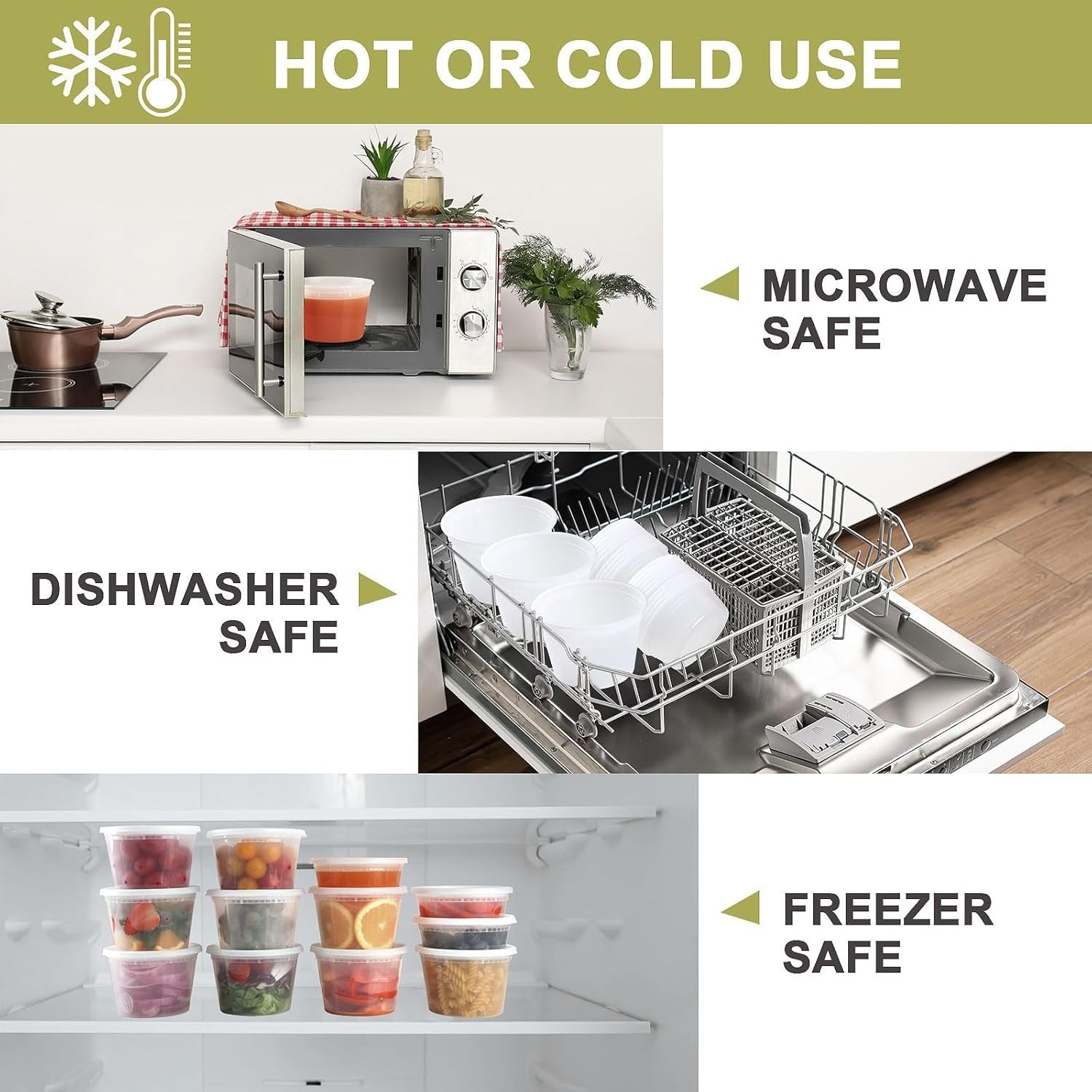 ✸ BULK 50 SETS DELI CONTAINERS - Ezalia pack set includes 30 x 16oz(pint size) and 20 x 8oz containers and 50 x lids. These different sizes enough to prepare your healthy meal or portion control plans for you and your families. Besides, all lids are of same size and fit all deli cups with lids, and you don't have to worry about confusing them. ✸ PREMIUM MATERIAL & BPA-FREE - Ezalia deli containers with lids are made of sturdy and 100% food garde shatter-resistant PP plastic, It provides good durability while ensuring a healthy diet for you. These clear soup containers with lids let you easily see what's inside, meet your daily needs for reusable or disposable. ✸ LEAKPROOF FOR TAKE OUT - Leakproof lids keep seal the containers firmly and protect your food from spilling, dust and moisture to keep your food fresh and safe. Our plastic containers with lids prevent your food from leaking or spilling, perfect for transporting liquids like soups or sauces. You can enjoy fresh meals everywhere you go! ✸ MULTIPURPOSE - Our stackable 8oz/16oz restaurant containers with lids are great for storing a variety of foods like soups, leftovers, salads, fruit, snacks, sauces, and dressings. The to go deli cups with lids are perfect for meal prep, portion control, take out lunch, picnics, and camping.