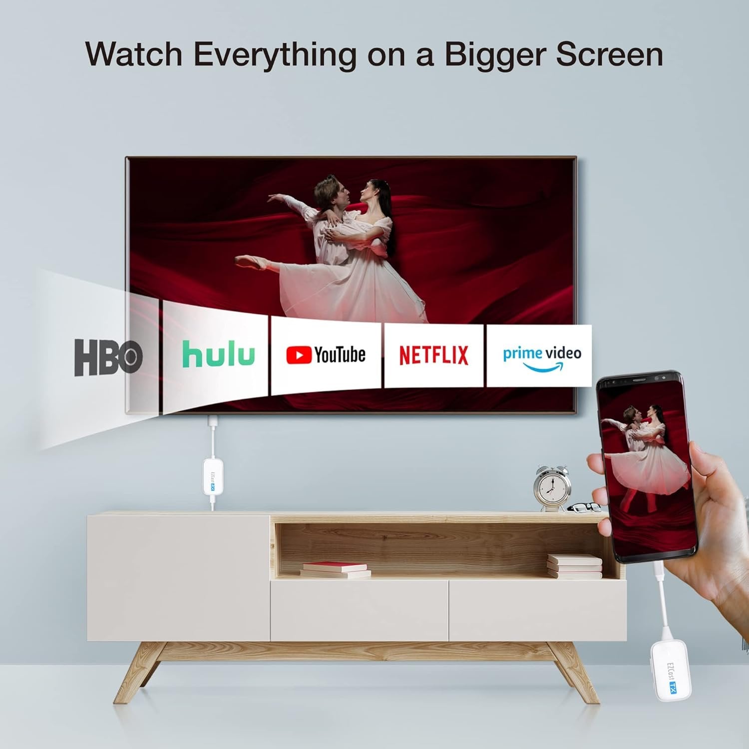 EZCast Wireless USB-C to HDMI Transmitter and Receiver, DisplayPort Screen Mirror from iPhone 15 to TV, 1080p HD, HDMI Extender, Wireless Display from Tablet and laptops to HDTV projectors