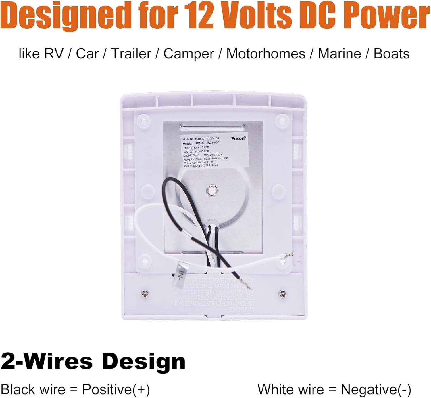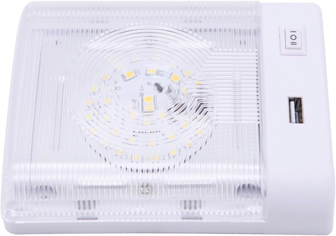 【✅Fast & Convenient USB Charging On-the-Go】Equipped with a 5V/2.4A USB port for rapid charging of smartphones, tablets, and other devices—perfect for road trips, camping, or tiny living spaces. Never worry about dead batteries while enjoying ambient lighting. 【✅Smart Dual-Tone Lighting - Set Your RV's Mood in Seconds】Instantly switch between warm white (3000K cozy ambiance) and cool daylight (4000K task lighting) with a patented 3-way rocker switch. Perfect for late-night relaxation or early morning prep. 【✅Tool-Free Installation】Install in minutes with included screws and 2-wire setup (black=positive, white=negative). Fits narrow spaces and replaces outdated dome lights in RVs, boats, campers, and more. Direct replacement for OEM model#SD1510 【✅Risk-Free RV Upgrade - Love Your Lights or We’ll Make It Right】Backed by a 1-year "No Questions Asked" warranty and US-based support. Your satisfaction powers our design – we’re RV owners too.